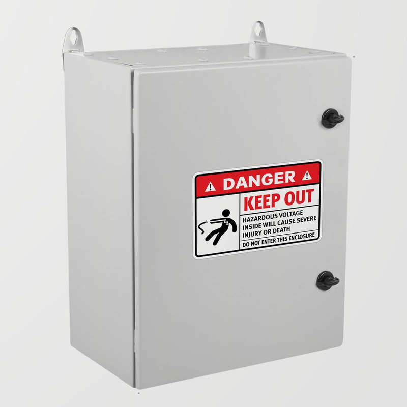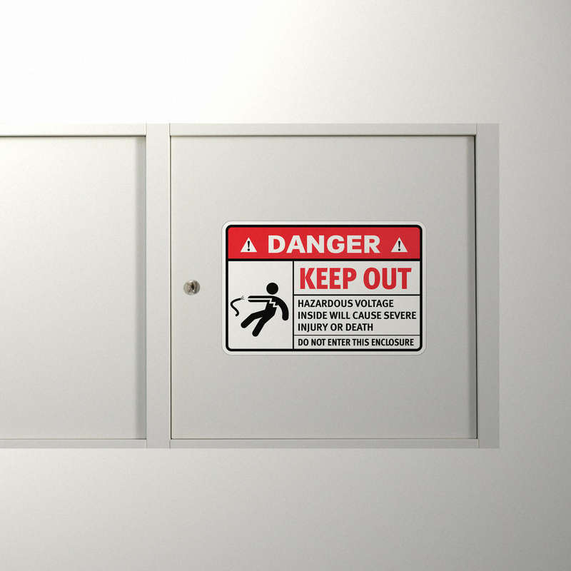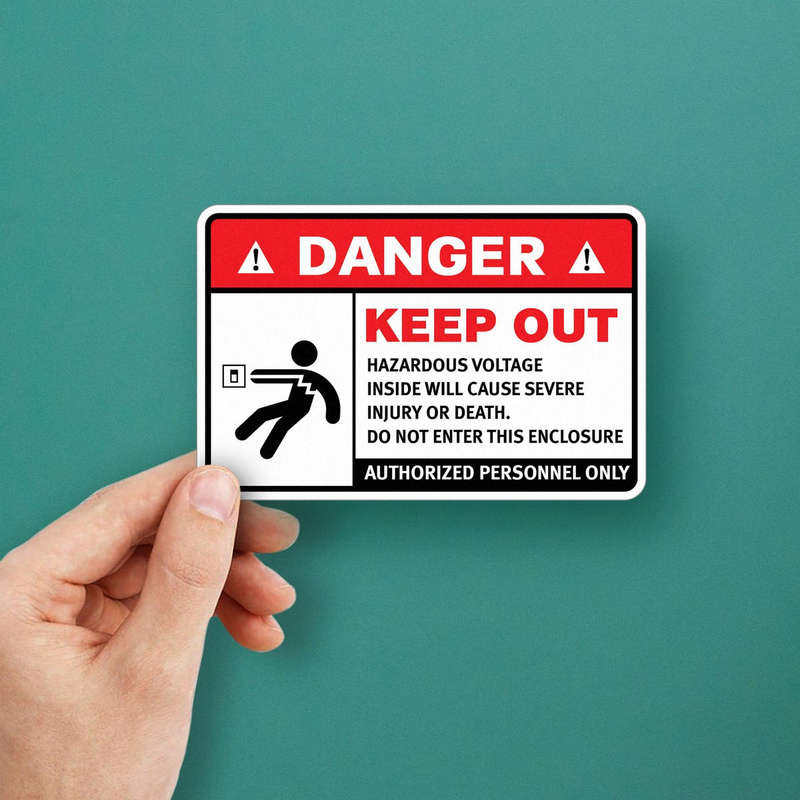 Warn personnel of hazardous voltage with this “Danger Keep Out Hazardous Voltage” sticker, designed for use in high-risk electrical enclosures. Featuring bold red and black text with clear “Keep Out” instructions, this sticker conveys the potential for severe injury or death, helping to prevent unauthorized access. Constructed from durable, weather-resistant material, it withstands various conditions, making it suitable for both indoor and outdoor environments. Easy to apply on doors, walls, or electrical cabinets, this sticker supports safety compliance and promotes awareness in hazardous areas. Available in multiple sizes to meet diverse safety requirements.