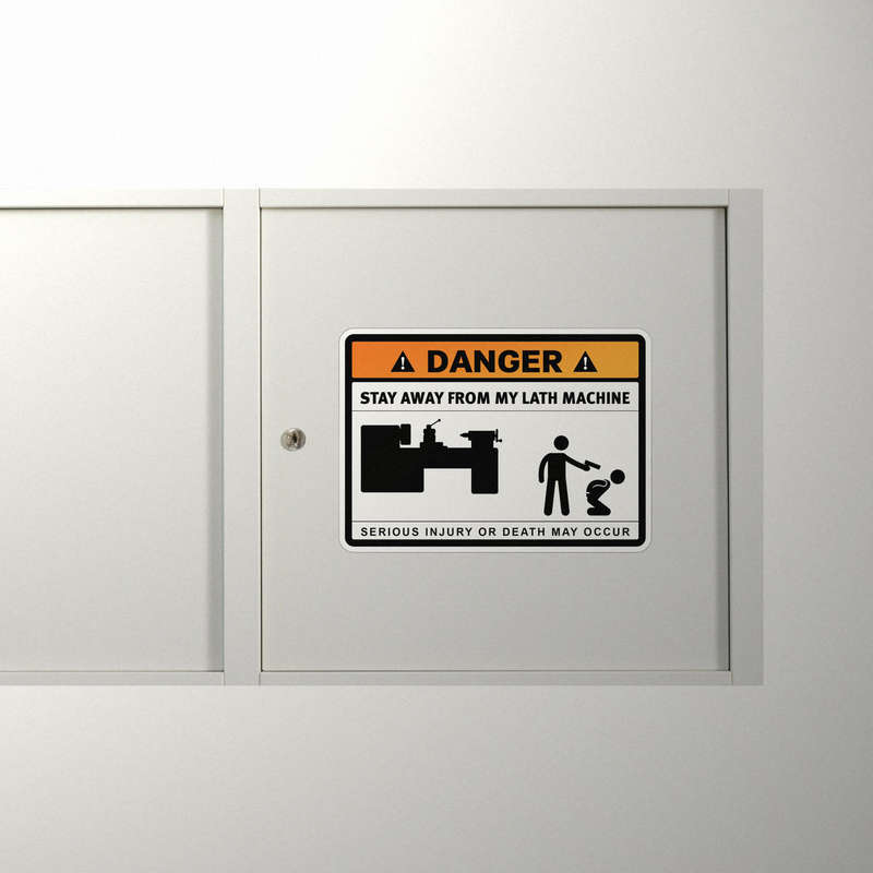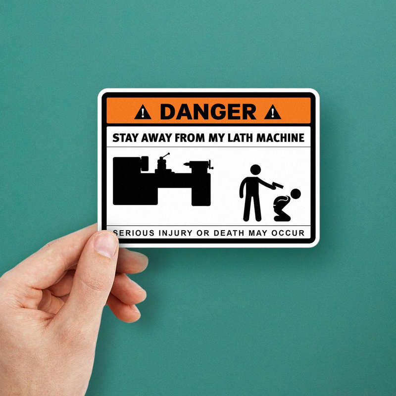 Add a humorous touch to your workshop or machinery with this “Danger: Stay Away from My Lathe Machine” vinyl sticker. Featuring bold black-and-orange warning graphics and humorous imagery, this decal is both functional and entertaining. Perfect for machine shops, garages, or equipment, it serves as a playful reminder to maintain safety boundaries. Made from durable, weatherproof vinyl, this sticker withstands fading and wear for long-lasting use indoors and outdoors. Easy to apply and remove without leaving residue, it’s a versatile and practical addition to any workspace. Available in multiple size options, it’s an excellent gift for machinists and shop enthusiasts who appreciate a little safety humor.