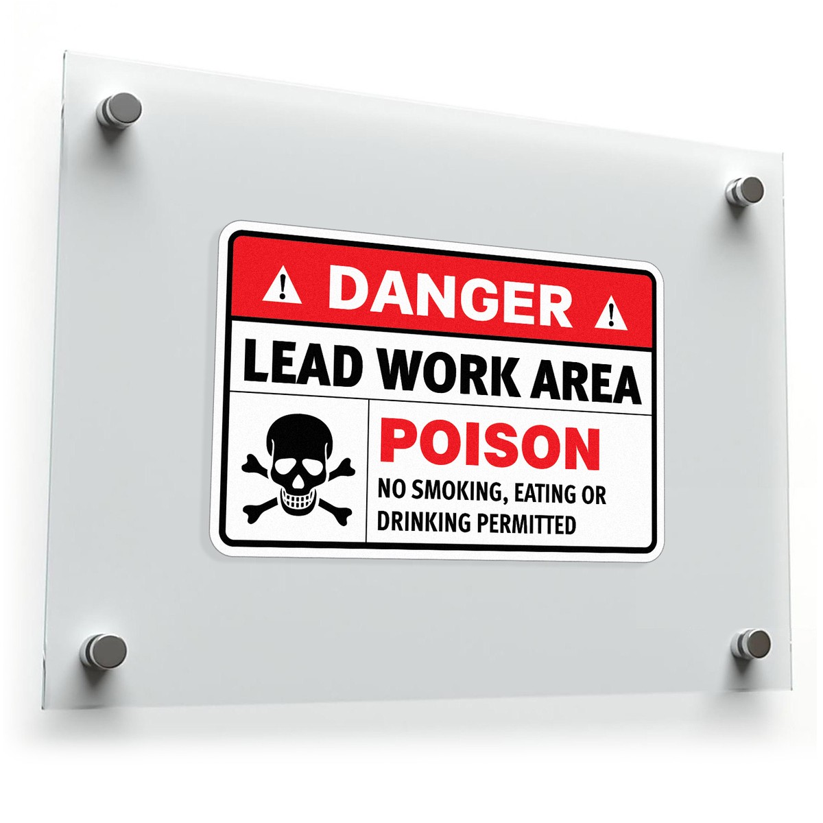 Promote safety and compliance in hazardous work zones with this Danger Lead Work Area sticker. Featuring a bold red and black design with a skull-and-crossbones symbol, it clearly warns of poison risks and prohibits smoking, eating, or drinking in the area. Made from durable, waterproof vinyl, this safety decal is built to endure industrial environments, ensuring high visibility and long-lasting performance. Ideal for walls, machinery, or equipment in lead work zones, it’s an essential addition to enhance safety protocols. Available in multiple size options to suit various workplace needs.