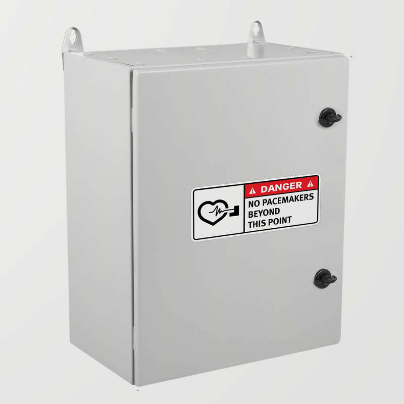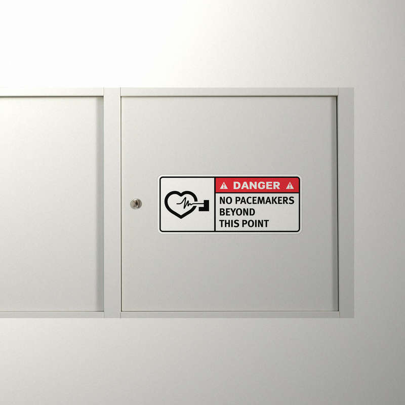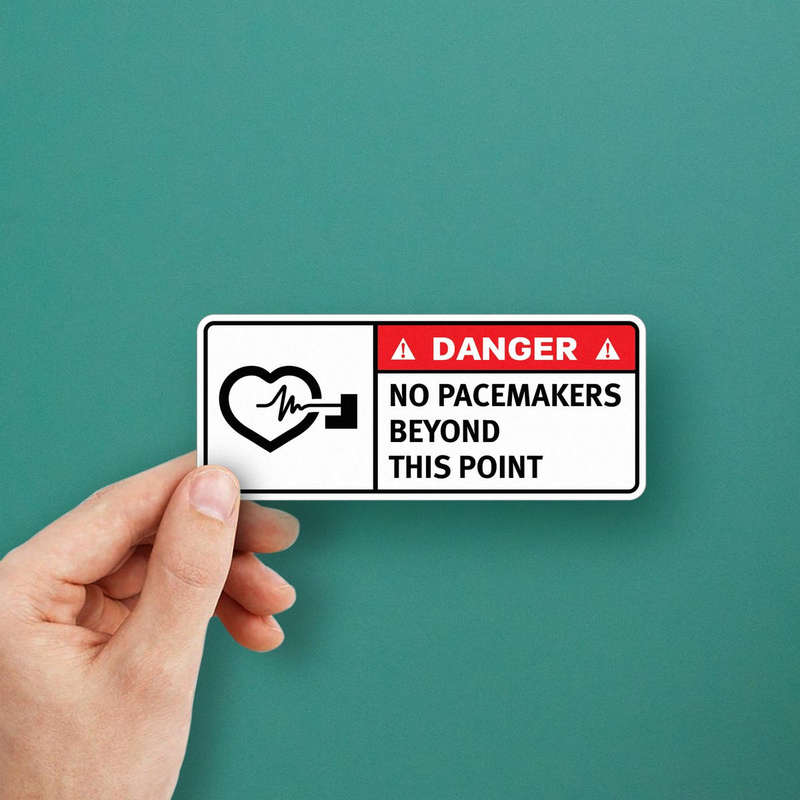 Enhance safety with this “Danger No Pacemakers Beyond This Point” sticker, designed to warn individuals with pacemakers of potential health risks in designated areas. Featuring a bold red and white layout with a clear heart symbol, this durable vinyl decal is suitable for industrial, medical, and other sensitive environments where electromagnetic interference may occur. Made from high-quality vinyl, it’s built to last and can be applied or removed without leaving residue, making it adaptable to changing needs. Available in multiple sizes, this safety sign is a vital addition to any area where health precautions are a priority.