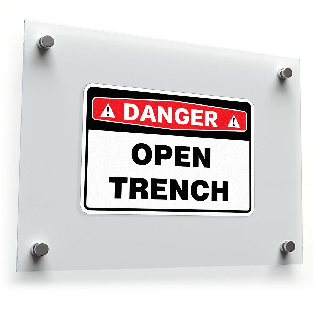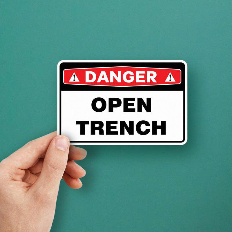 Danger Open Trench Sticker ⚠️ High-Visibility Design: This “Danger Open Trench” sticker features bold black and red text on a white background, ensuring clear visibility even from a distance. Essential for maintaining safety at construction or excavation sites. ⚠️