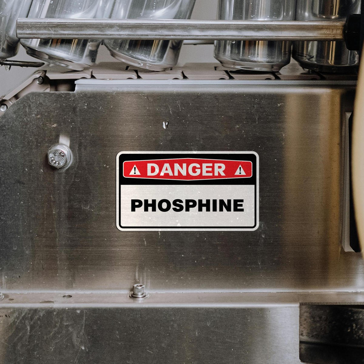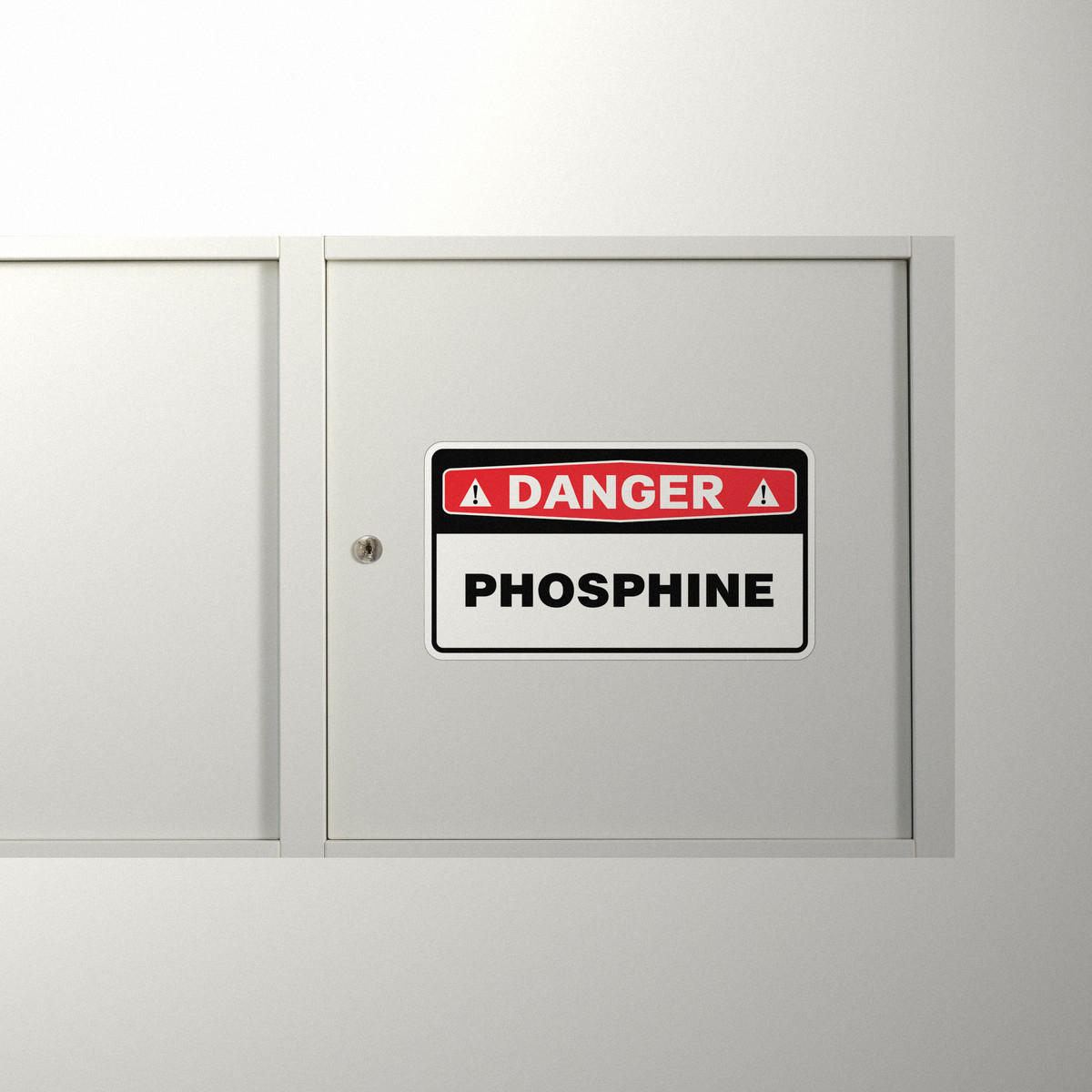 Stay compliant and promote workplace safety with this “Danger: Phosphine” vinyl safety sticker. Ideal for environments where hazardous chemicals are present, this durable sticker ensures a clear and visible warning to protect workers and visitors. Its weatherproof vinyl construction withstands exposure to harsh chemicals and outdoor conditions, while the easy application ensures it stays in place on doors, walls, or equipment. Available in multiple sizes, this sticker is designed to meet OSHA requirements, providing peace of mind in dangerous work environments.