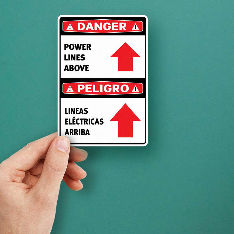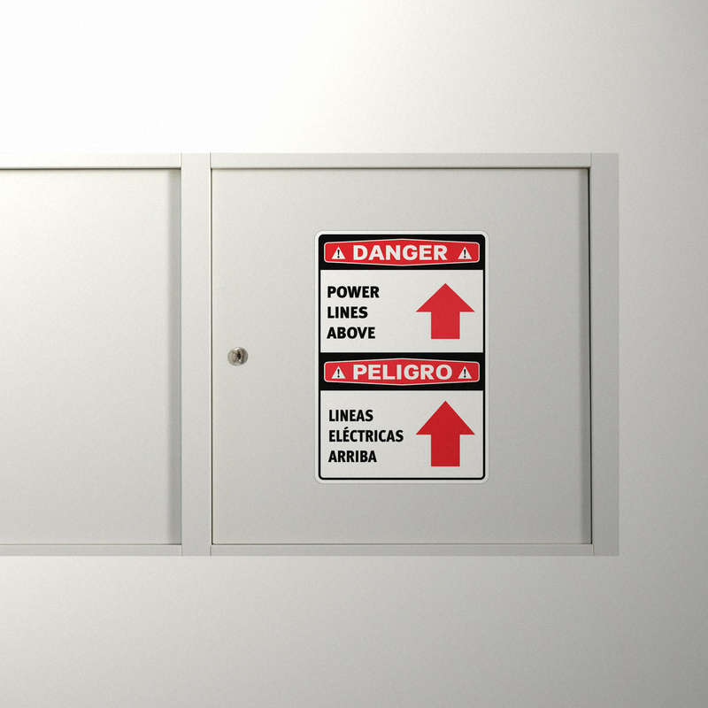 Ensure safety and compliance with this “Danger: Power Lines Above” bilingual safety sticker. Featuring bold text and red arrows in English and Spanish, this decal delivers a clear, visible warning about overhead electrical hazards. Ideal for construction sites, industrial workplaces, and outdoor spaces, its eye-catching design promotes awareness and reduces risks. Made from weatherproof and durable materials, this sticker resists fading, water, and UV damage, ensuring long-lasting use in tough conditions. Easy to apply and available in multiple size options, it adheres securely to poles, walls, equipment, or vehicles, helping you maintain a safe and inclusive environment.