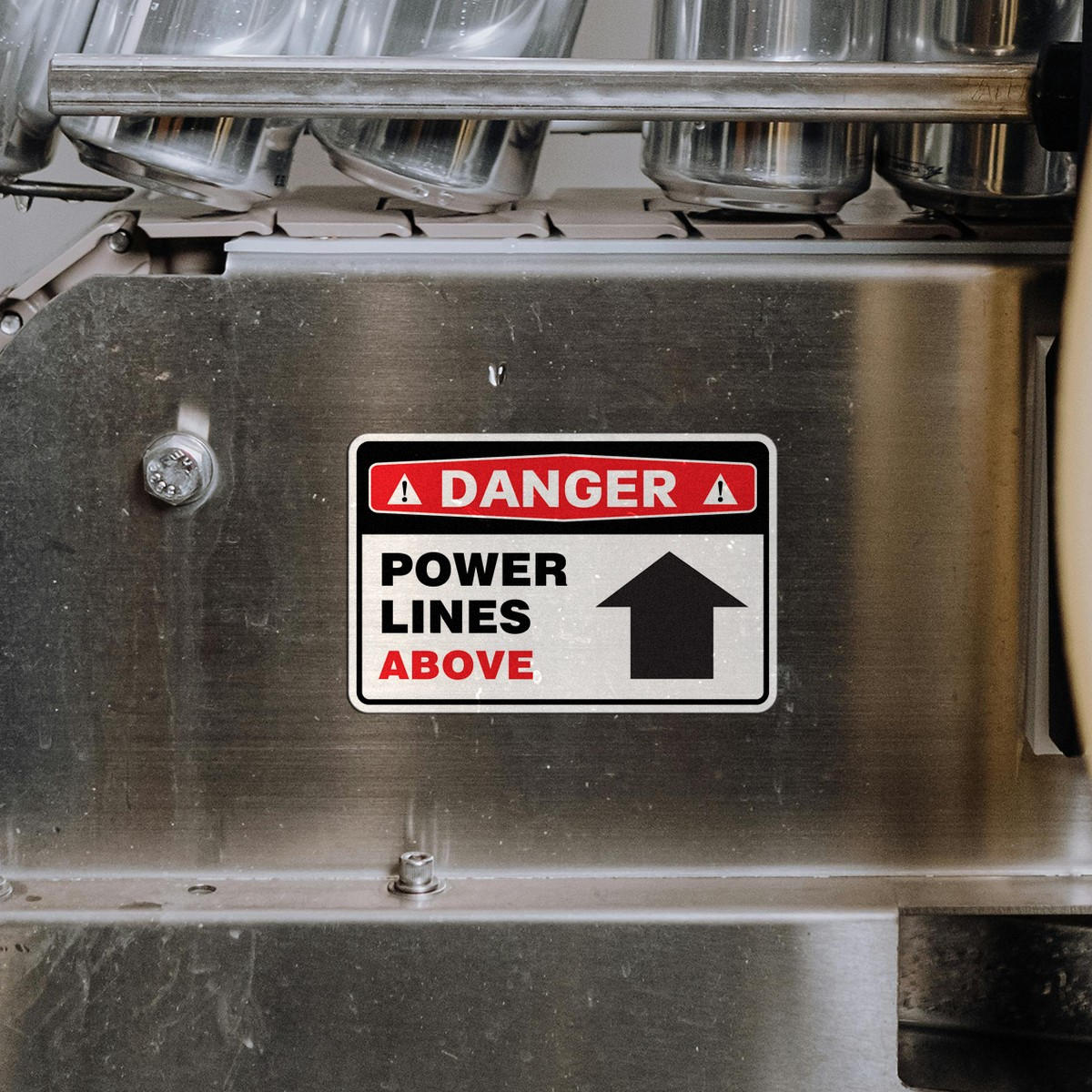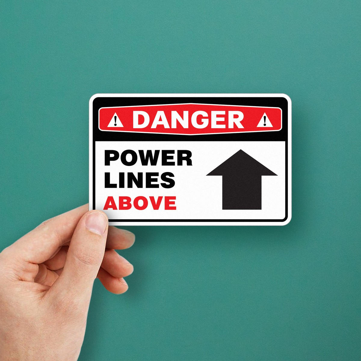 Danger Power Lines Above Warning Sign Sticker ⚠️ Critical Overhead Hazard Warning: This “Danger Power Lines Above” sign alerts workers and visitors to the dangers of overhead power lines, ensuring safety and awareness in high-risk areas. ⚠️