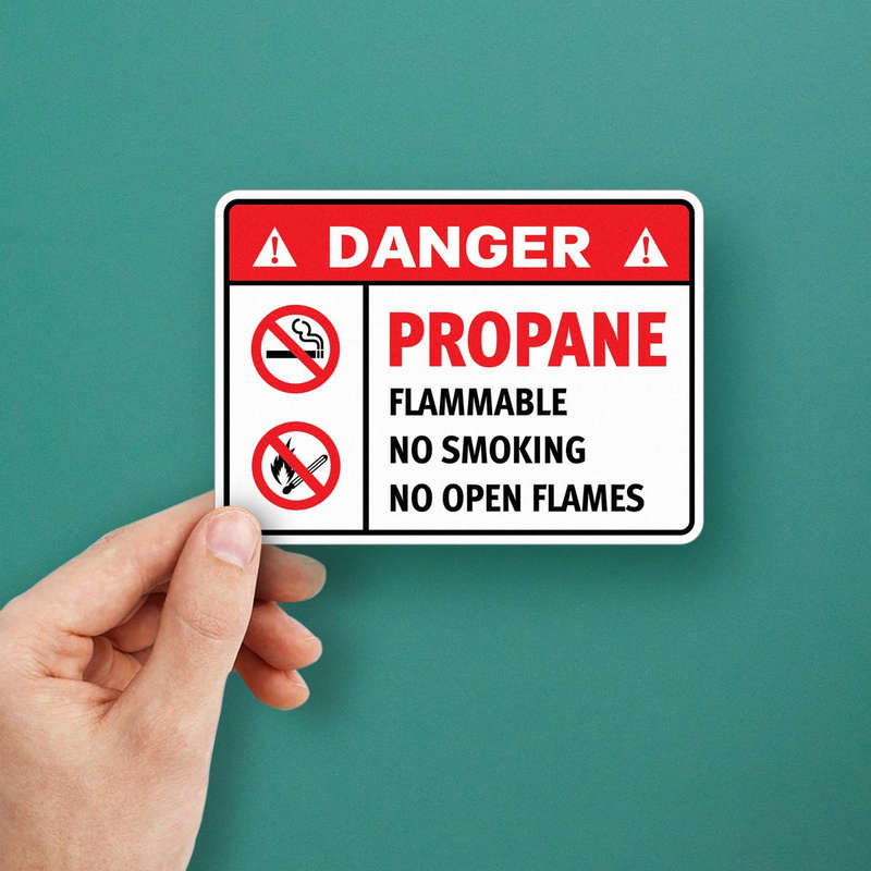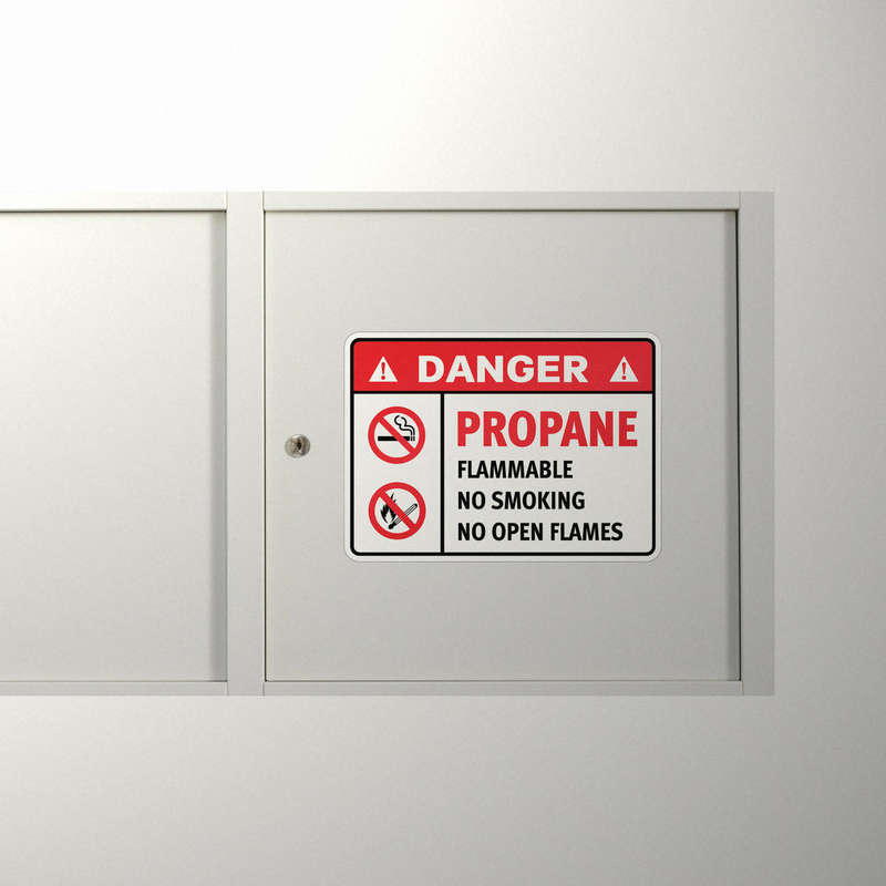 Ensure safety in propane storage and use areas with this “Danger Propane Flammable” decal, featuring bold red and white colors and clear no-smoking and no-flame symbols. Designed to highlight critical safety protocols, this vinyl sticker helps prevent accidents and ensures regulatory compliance. Made from durable vinyl, it resists wear, weather, and harsh environments, making it ideal for both indoor and outdoor use. The adhesive backing allows for quick and secure application on walls, tanks, or equipment, and it removes cleanly without sticky residue. OSHA-compliant and easy to use, this decal is an essential tool for fire prevention and workplace safety.