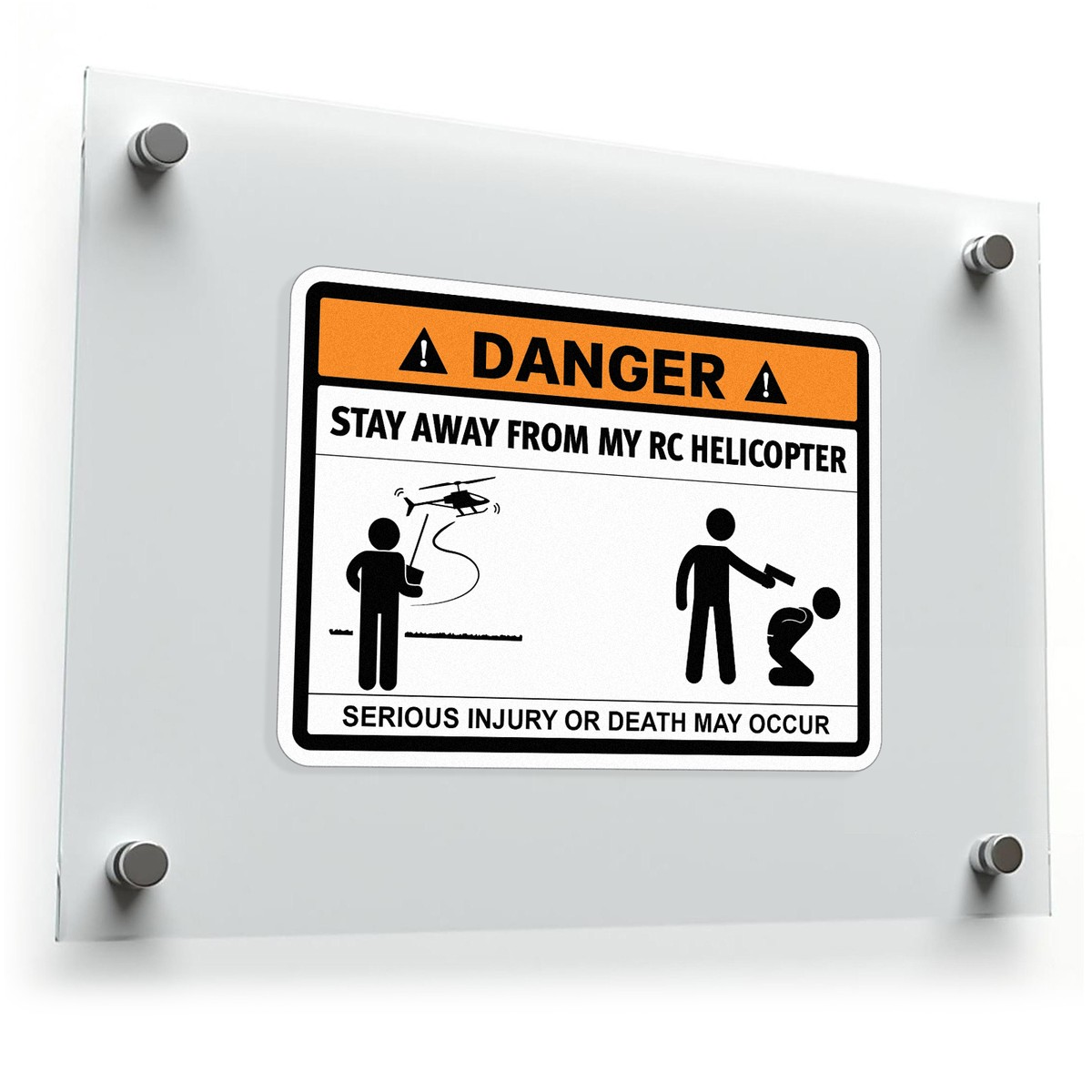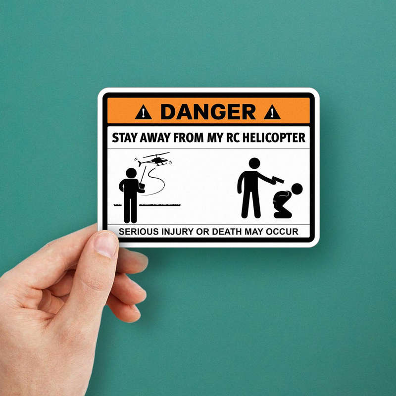Danger RC Helicopter Warning Decal 🚁 RC Helicopter Safety Warning: This decal boldly declares “Stay Away from My RC Helicopter,” providing a clear cautionary message to protect bystanders from potential harm. Perfect for RC hobby enthusiasts! 🚁
