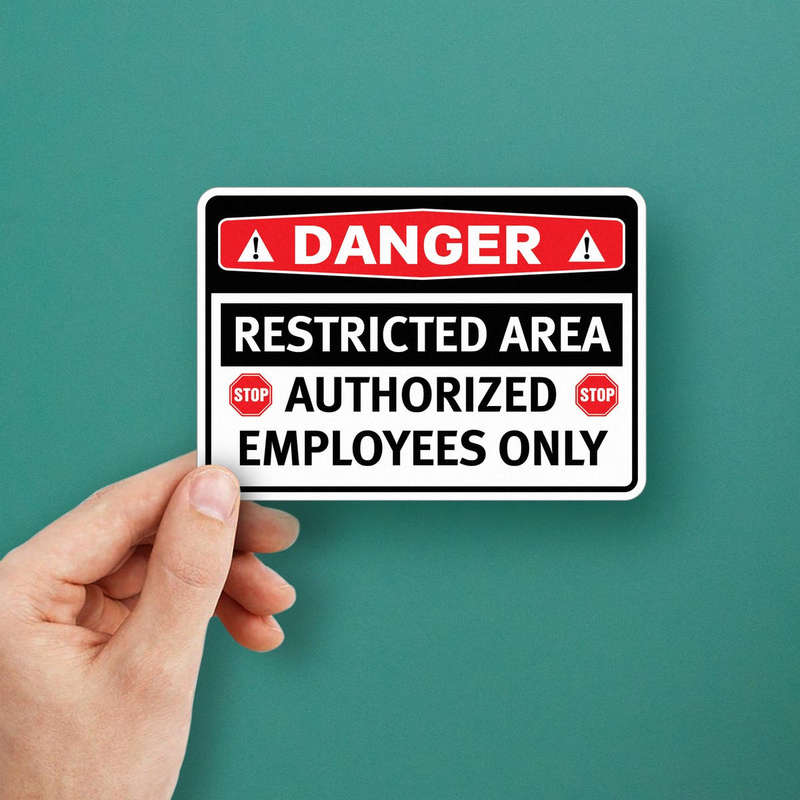 Ensure safety and compliance with this bold “Danger – Restricted Area” sticker, designed to clearly communicate authorized access restrictions. Featuring high-contrast colors and clear text, this decal is perfect for workplaces, hazardous zones, or restricted entry points. Made from durable, weather-resistant vinyl, it withstands both indoor and outdoor conditions while maintaining its vibrant design. Easy to apply and remove, it adheres seamlessly to walls, doors, or equipment without leaving residue. Available in multiple size options, it’s an essential tool for creating a safer, regulation-compliant environment.