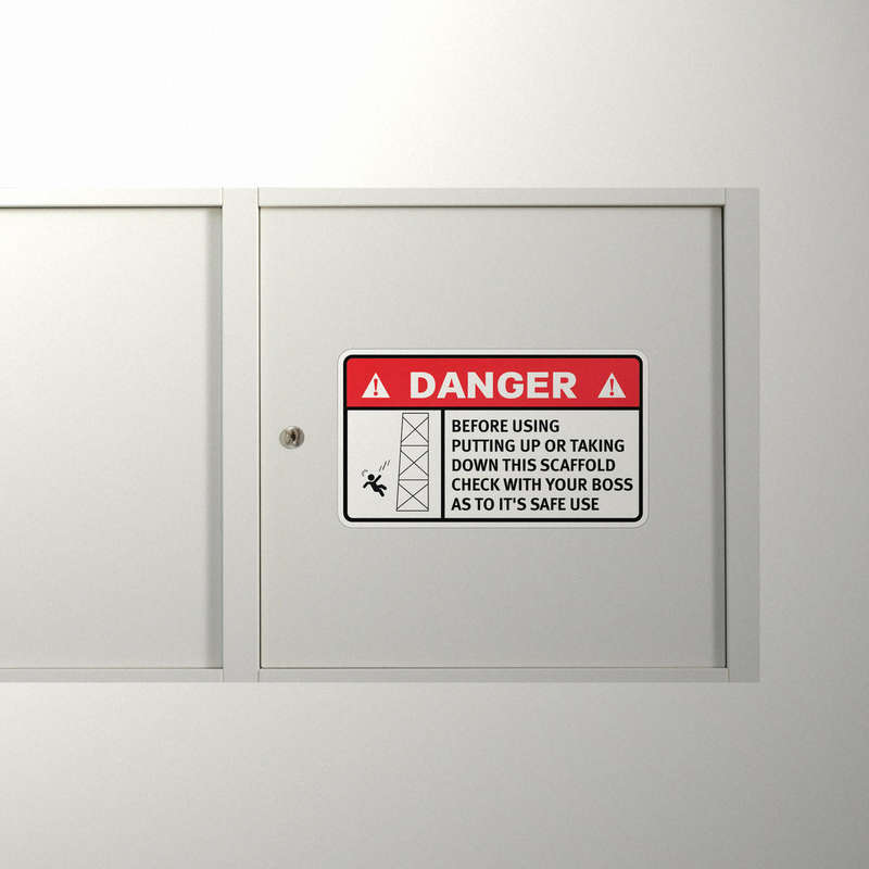 👀 Highly Visible Design: With striking red, black, and white colors and clear text, this sticker grabs attention, ensuring everyone adheres to scaffold safety protocols. 👀
