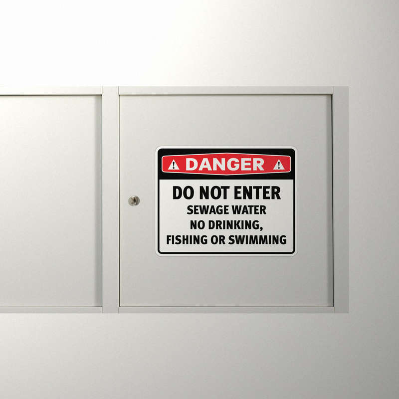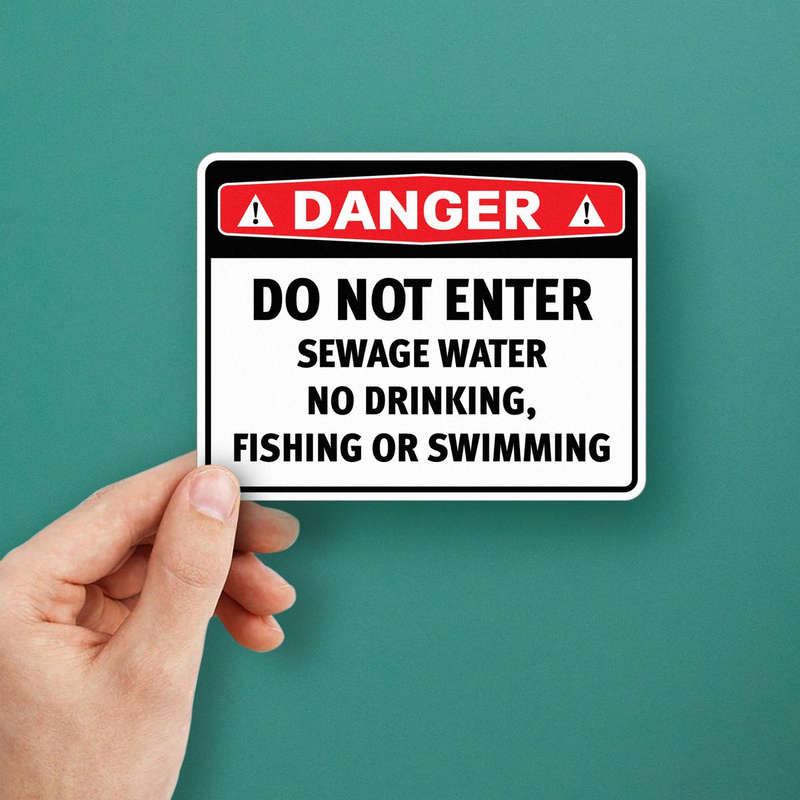 Protect public health with this Danger Sewage Water Warning Sticker. Designed to deter entry into contaminated areas, this high-visibility decal features a red “Danger” header with bold black text warning against drinking, fishing, and swimming. Made from durable, fade-resistant vinyl, this sticker is crafted for outdoor environments, maintaining its visibility in various conditions. Ideal for marking hazardous sites around sewage, contaminated water, and restricted areas, this decal serves as a crucial reminder of safety protocols. With easy peel-and-stick application, it adheres securely and removes cleanly if necessary. Available in multiple sizes for flexible placement.