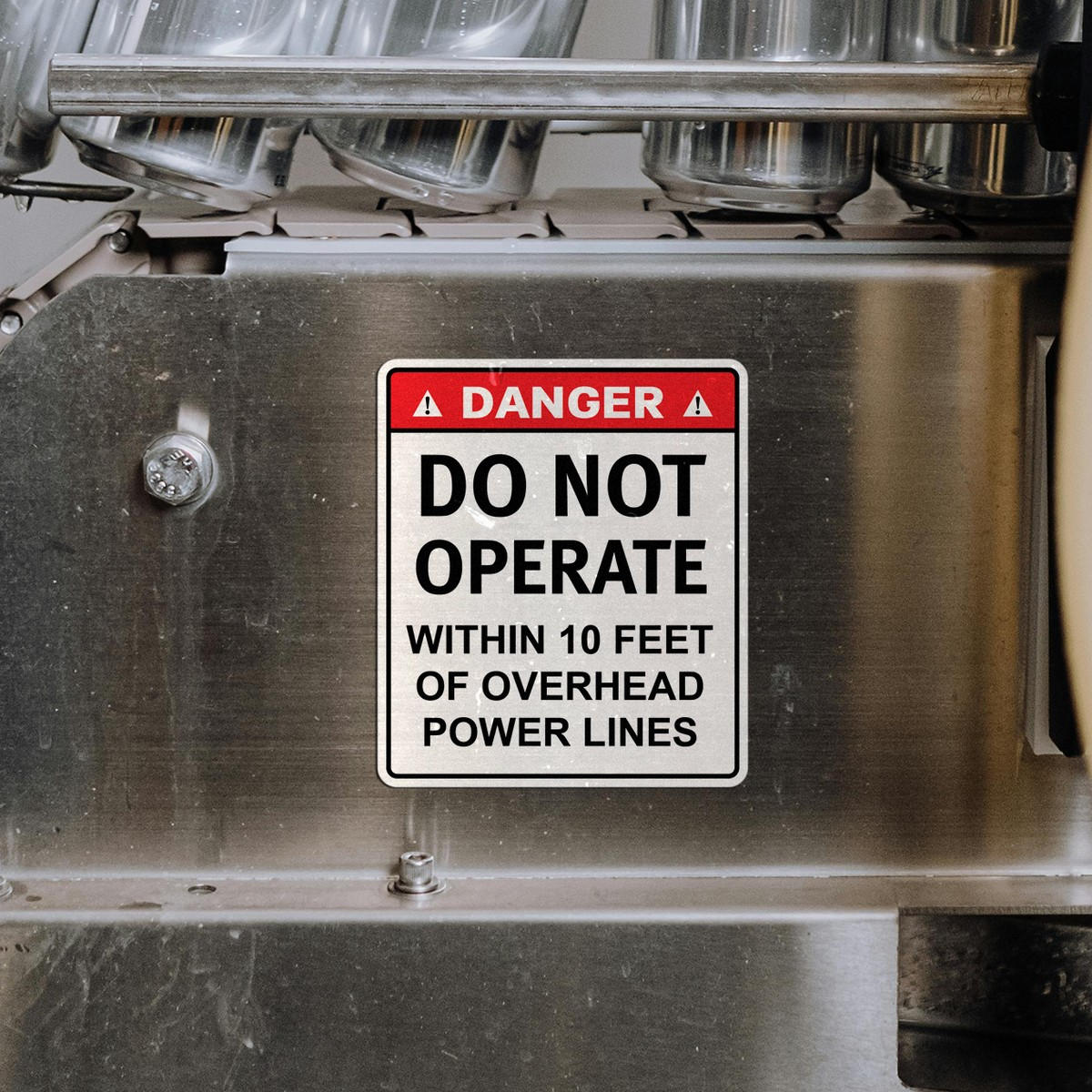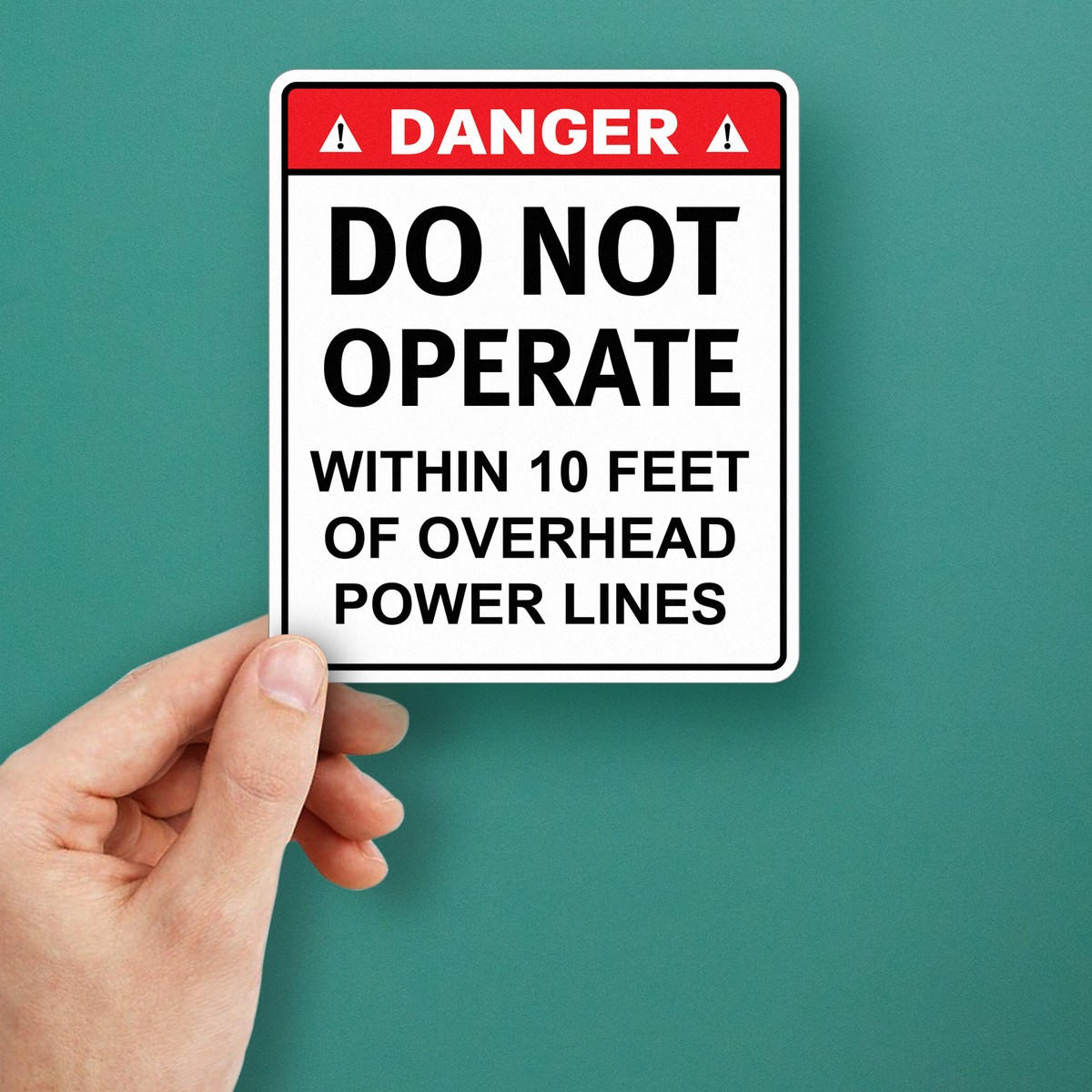 Enhance safety and compliance with this OSHA-compliant “Danger: Do Not Operate Within 10 Feet of Overhead Power Lines” vinyl sticker. Ideal for construction sites, warehouses, and other hazardous areas, this safety sign communicates clear guidelines to help prevent accidents. Made from durable, weatherproof vinyl, it ensures long-lasting visibility even in harsh outdoor conditions. Easy to apply and remove without leaving residue, this safety decal is perfect for both temporary and permanent use. Promote safety and protect your team with this essential workplace sign.