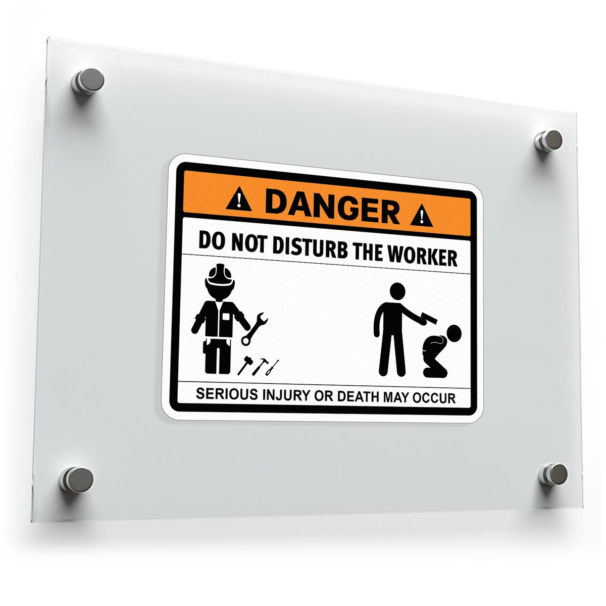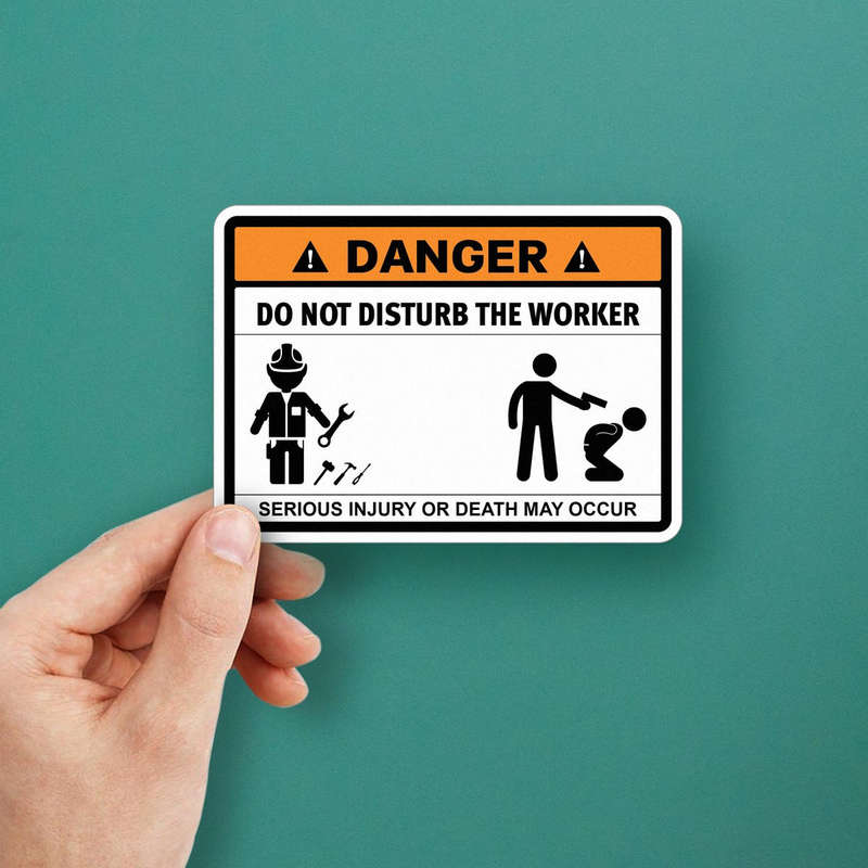 Promote workplace safety with this bold “Danger – Do Not Disturb the Worker” sticker, designed to clearly communicate hazard warnings and maintain secure environments. Its vibrant orange and black design ensures high visibility, making it a crucial addition to industrial areas, construction sites, or offices. Crafted from durable vinyl, this sticker is built to withstand harsh conditions and is suitable for both indoor and outdoor use. Easy to apply and remove without residue, it offers flexibility and practicality. Whether affixed to doors, walls, or equipment, this safety sticker effectively enhances awareness and protects workers, adhering to strict safety protocols.