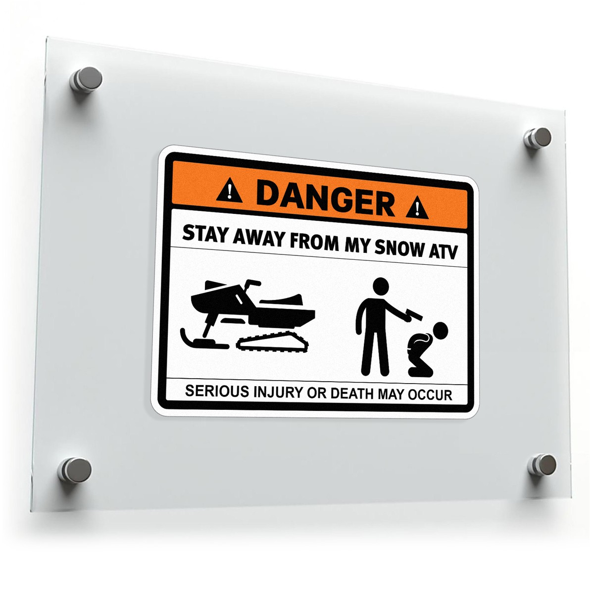 Ensure safety and clear communication with this bold “Danger: Stay Away from My Snow ATV” warning sticker. Designed with a bright orange header, bold black text, and striking graphics, this decal demands attention in any setting. Crafted from premium, fade-resistant vinyl, it’s built to endure harsh outdoor conditions while maintaining its message. Perfect for snow ATVs, helmets, garages, or any smooth surface, it combines durability with visibility. Available in multiple sizes, this decal ensures that your safety message is seen and respected, providing peace of mind and protection for your equipment and surroundings.