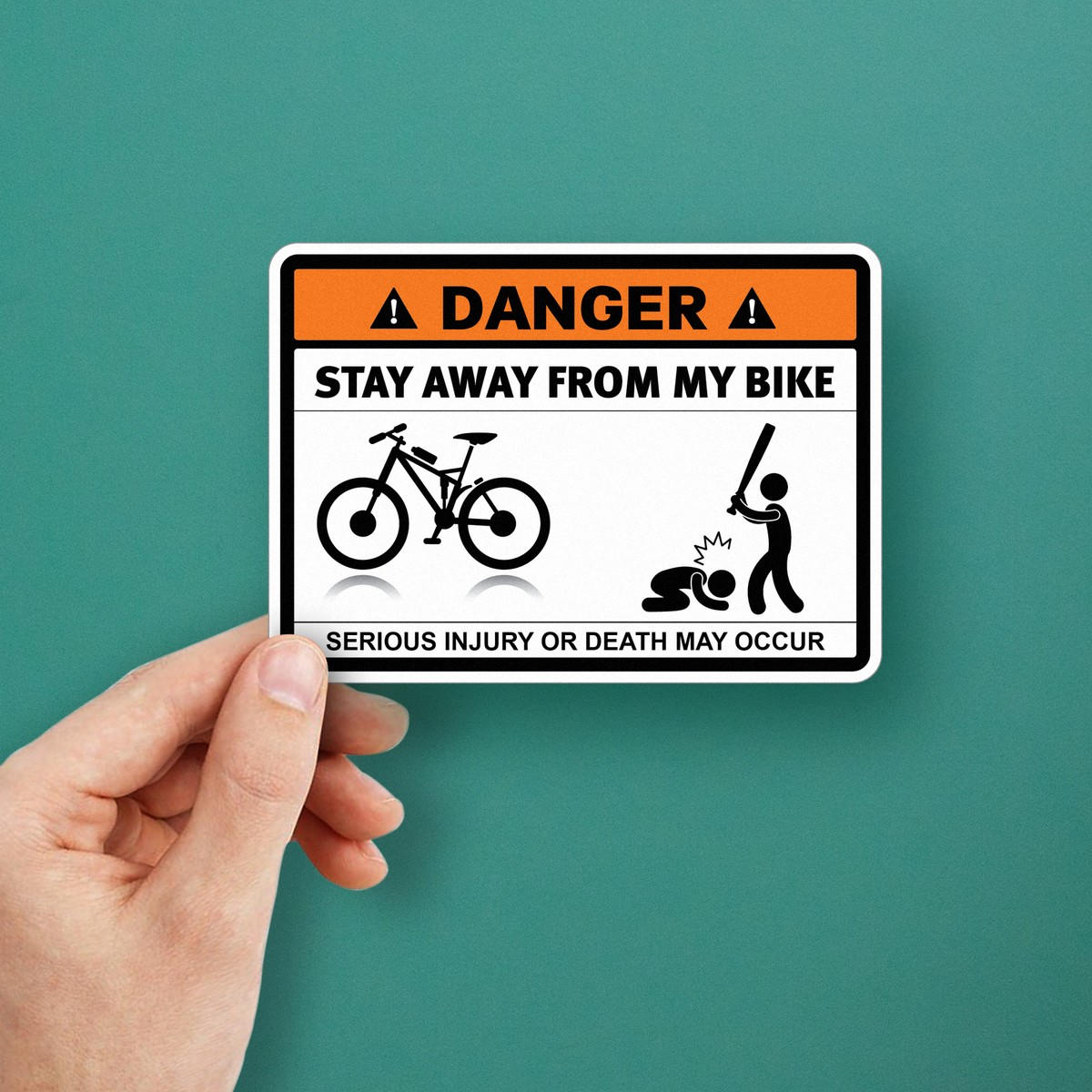 Keep your bike safe with a touch of humor using this “Stay Away from My Bike” warning sticker. Designed for cyclists, this vinyl decal delivers a bold and playful message to anyone eyeing your bicycle. Whether applied to your bike, garage, or storage space, this sticker provides a fun way to protect your valuable ride. Made from durable, weatherproof vinyl, it resists wear and tear, ensuring it stays vibrant and intact in all conditions. Available in multiple sizes, this sticker is perfect for any cyclist looking to add a little personality to their bike while keeping it safe from harm.