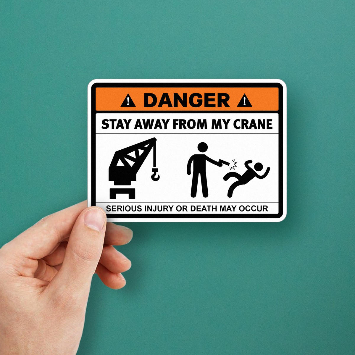 Ensure the safety of your construction site with the ‘Danger: Stay Away from My Crane’ vinyl sticker. Its bold, high-contrast design serves as a clear warning to keep clear of heavy machinery, helping to prevent accidents. Made from durable, weatherproof vinyl, this sticker is built to withstand the rugged conditions of industrial environments, including exposure to moisture and UV rays. It applies easily to flat surfaces and removes cleanly, providing both flexibility and long-lasting use. Perfect for cranes and other heavy equipment, this sticker is a must-have for any worksite looking to prioritize safety.