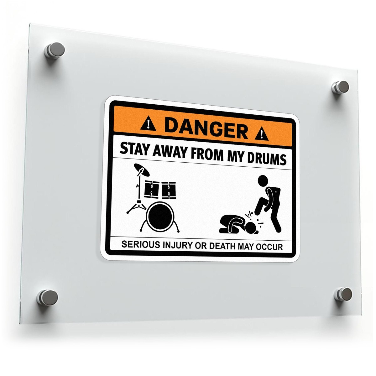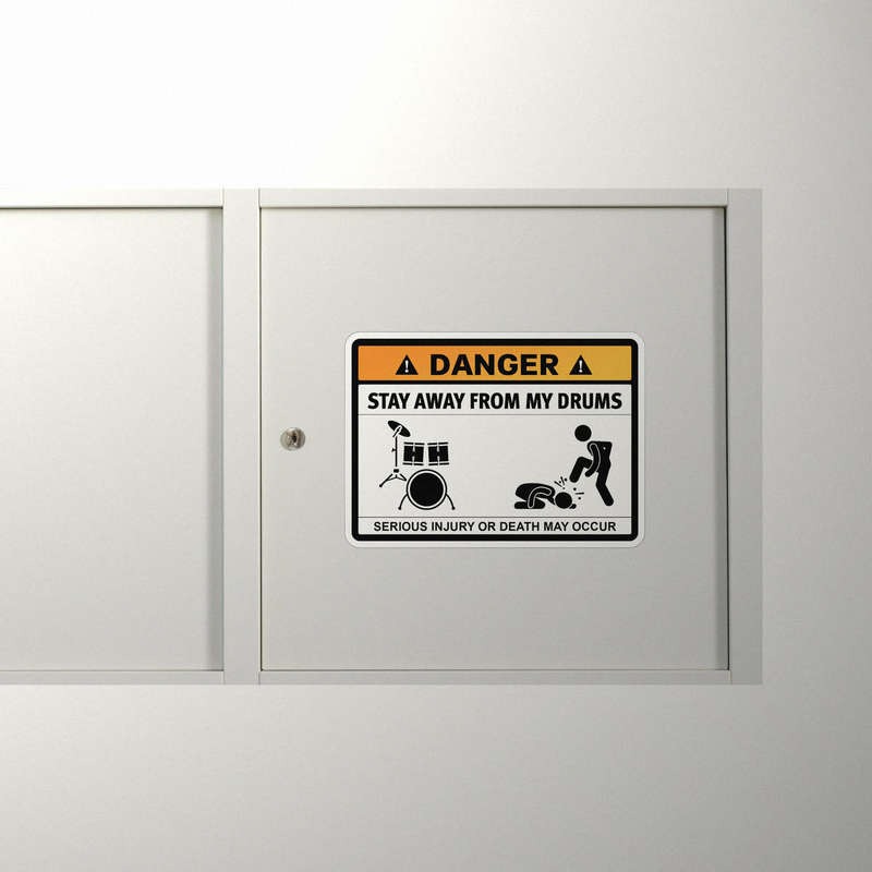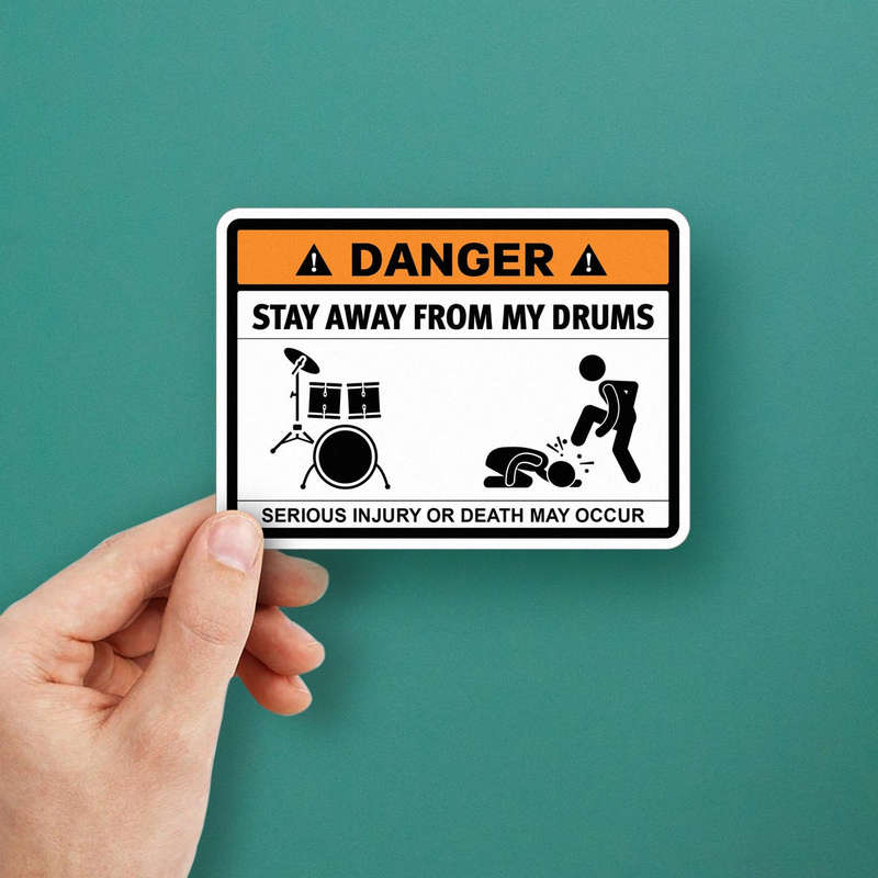Keep your drums safe in style with this humorous “Stay Away from My Drums” warning sticker. Perfect for drummers with a sense of humor, this bold and funny decal features a warning sign design that’s sure to get noticed. Made from durable, weather-resistant vinyl, it’s ideal for use on drum sets, cars, laptops, or any other surface where you want to show off your musical personality. Available in multiple sizes, this sticker is easy to apply and remove, leaving no sticky residue behind. Add a touch of humor and protect your drums with this eye-catching warning sticker.