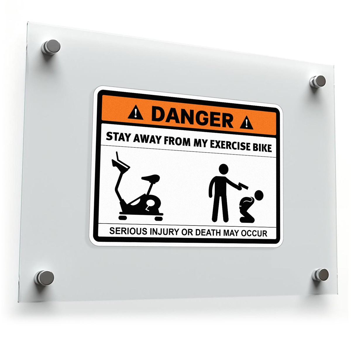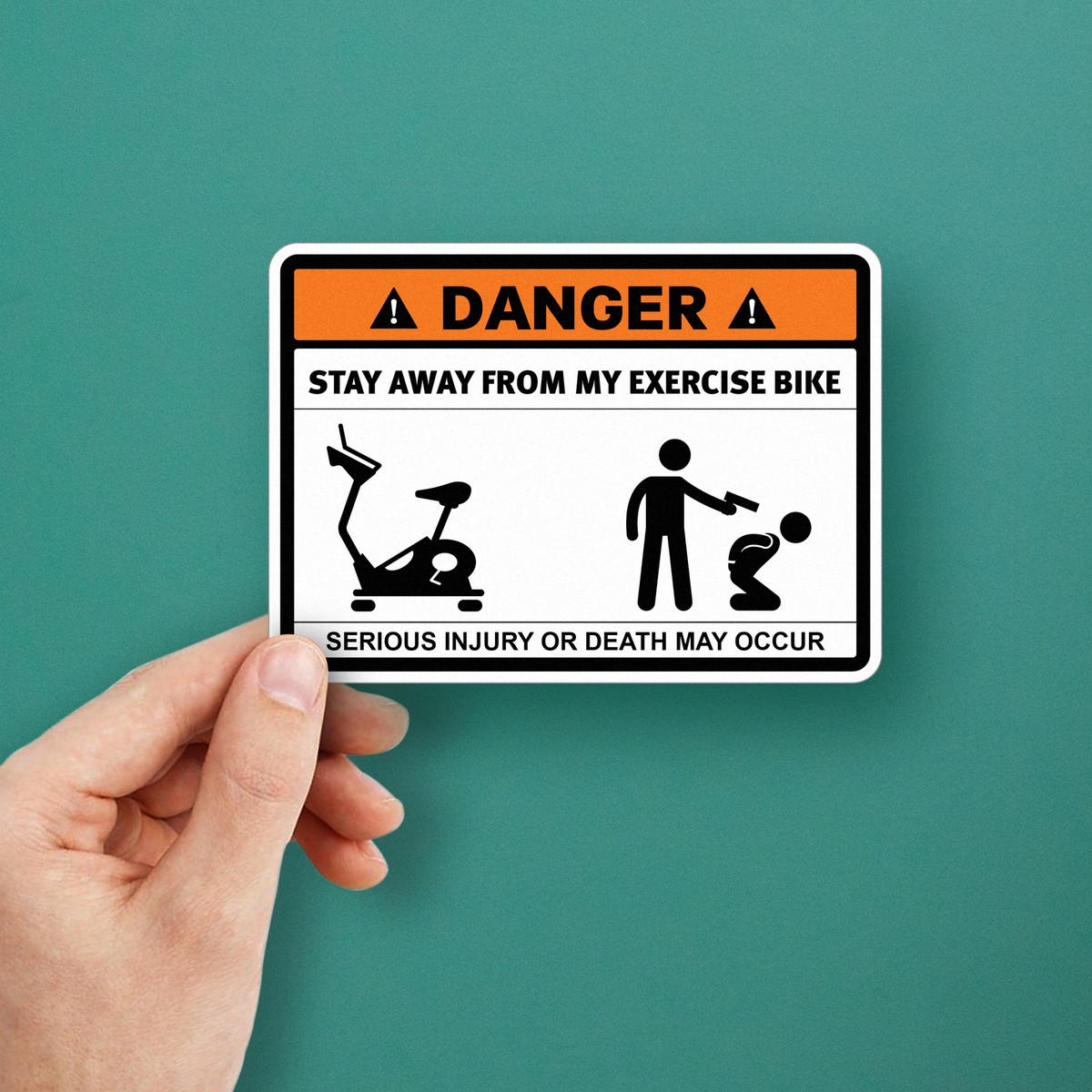 Keep distractions at bay with this “Danger: Stay Away from My Exercise Bike” sticker, a perfect blend of humor and practicality. Featuring a bold orange and black design with a funny warning graphic, this decal is great for home gyms, workout areas, or fitness equipment. Crafted from durable vinyl, it’s fade-resistant and weatherproof, ensuring it looks great indoors or outdoors. The peel-and-stick application allows for effortless placement on smooth surfaces like exercise bikes or lockers, with clean removal when needed. A unique gift for fitness enthusiasts, this sticker adds personality and humor to any workout space. Available in multiple sizes to suit your needs.