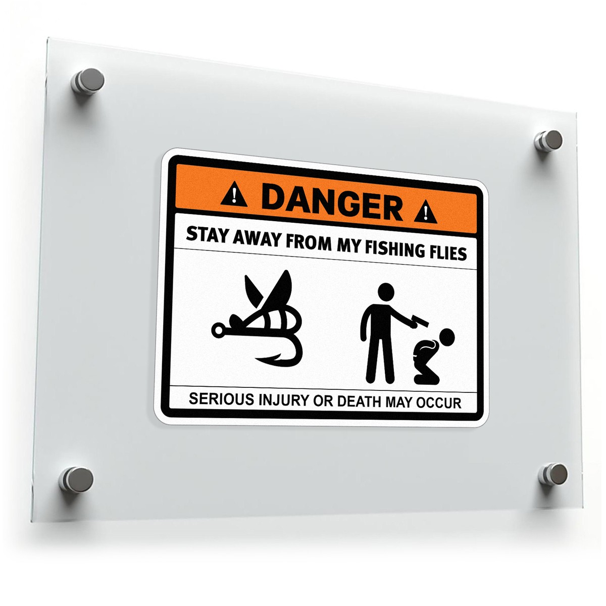 🌊 Highly Visible Design: Featuring a bold black, orange, and white design, this sticker ensures your message is clearly seen, deterring anyone from getting too close to your fishing flies. 🌊