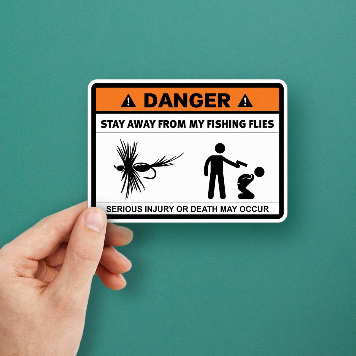 😂 Perfect for Fishing Enthusiasts: A lighthearted yet serious reminder for anyone approaching your prized fishing flies, this decal is a great addition to any tackle box or boat. 😂