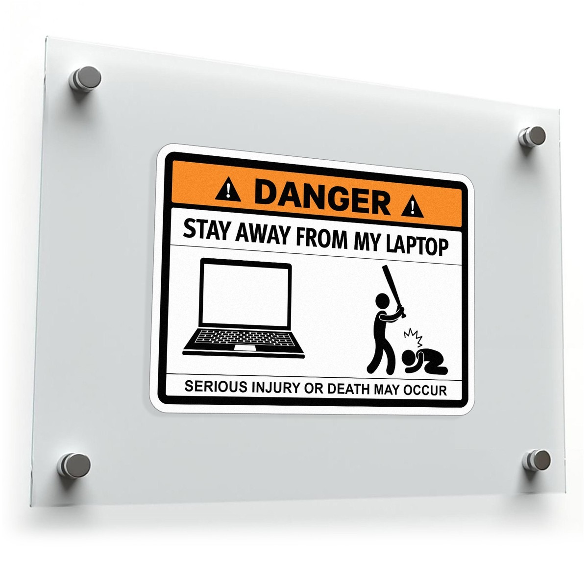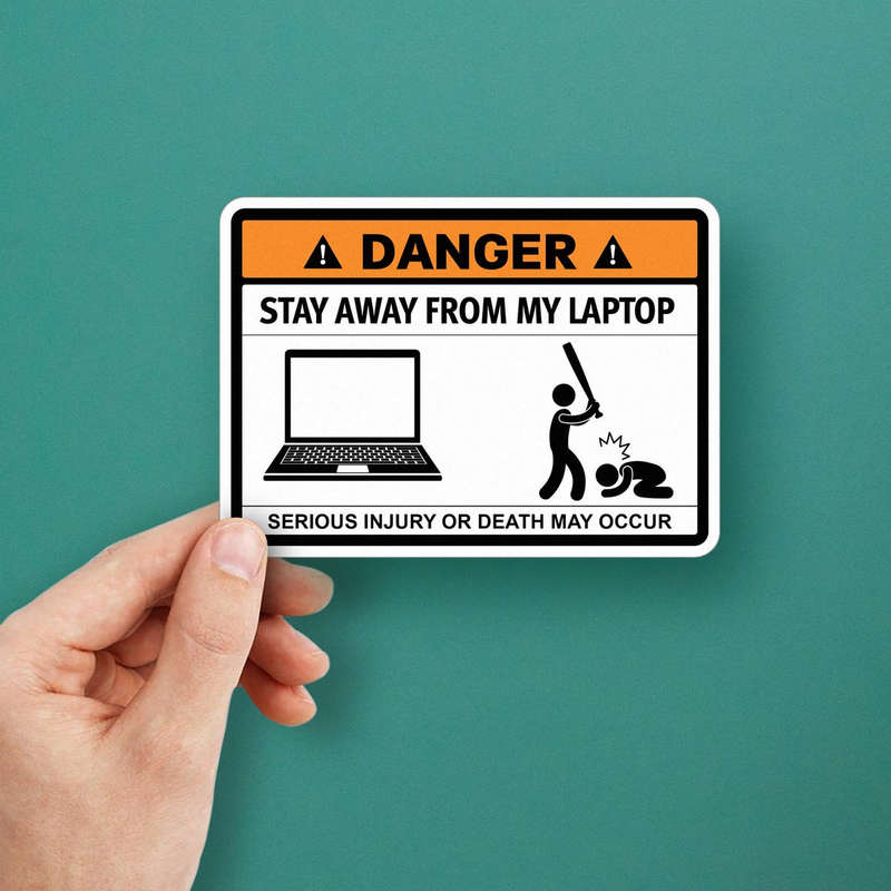 Add a touch of humor to your workspace with this funny “Danger: Stay Away From My Laptop” sticker. Featuring bold text and a clear warning graphic, this vinyl decal delivers a playful yet stern message to keep others from meddling with your precious device. Perfect for laptops, desks, and even cars, this waterproof and durable sticker is designed to withstand everyday wear while maintaining its vibrant colors. Easy to apply and remove without leaving any residue, it offers quick customization for your workspace. Available in multiple size options, it’s a fun way to safeguard your space with a laugh.