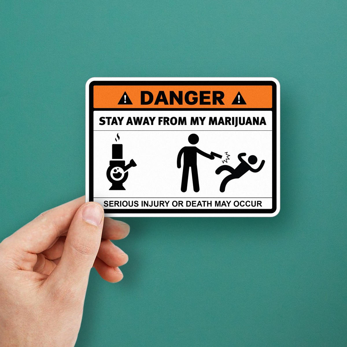 Add some humor to your decor with this “Danger: Stay Away from My Marijuana” sticker. Featuring a bold orange and black design and a funny graphic, this decal is a playful yet clear warning. Perfect for cannabis enthusiasts, it’s ideal for personal spaces like stash boxes, lockers, or doors. Made from durable vinyl, this sticker is fade-resistant and weatherproof, ensuring long-lasting use indoors or outdoors. Its peel-and-stick backing makes it easy to apply and remove cleanly. A hilarious gift for friends or roommates, this sticker is available in multiple sizes to suit your style.