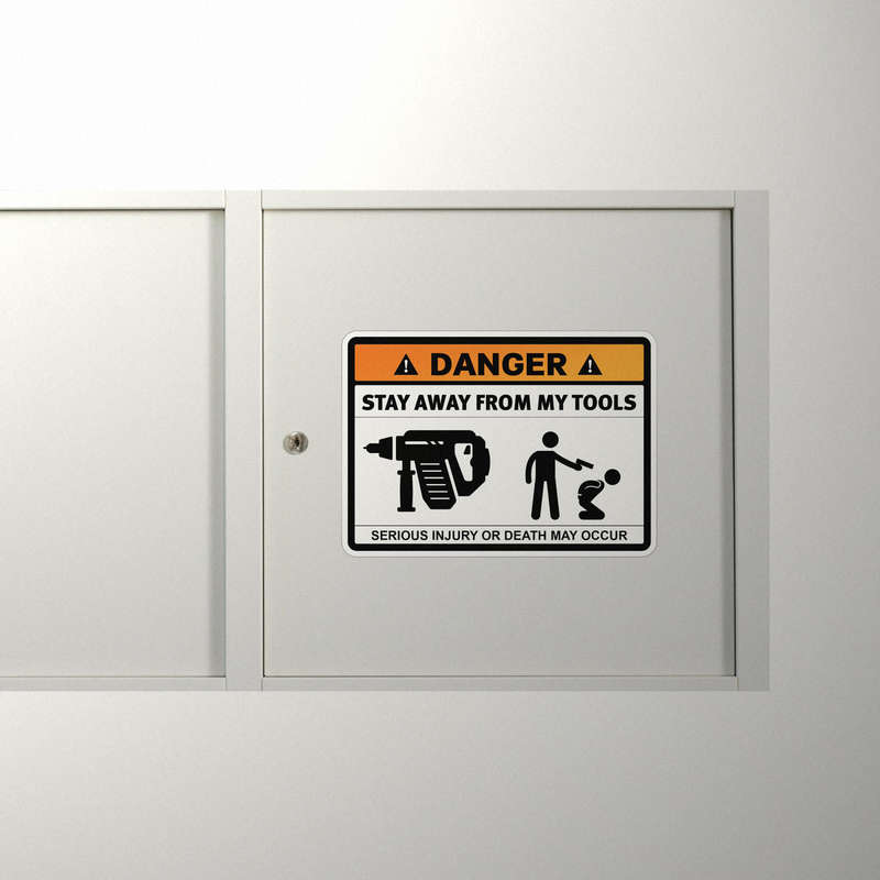 Bring a sense of humor to your workshop or garage with this “Danger – Stay Away from My Tools” sticker featuring a power drill icon. Designed to protect your tools while adding personality, this decal delivers a clear message in a lighthearted way. Made from durable vinyl, it withstands the rough conditions common in workspaces, such as dust, oils, and frequent handling. Easy to apply and remove, this sticker is perfect for tool enthusiasts who want to keep their space secure while showing off a fun side. Available in multiple sizes, it’s a functional and entertaining addition to any workspace.