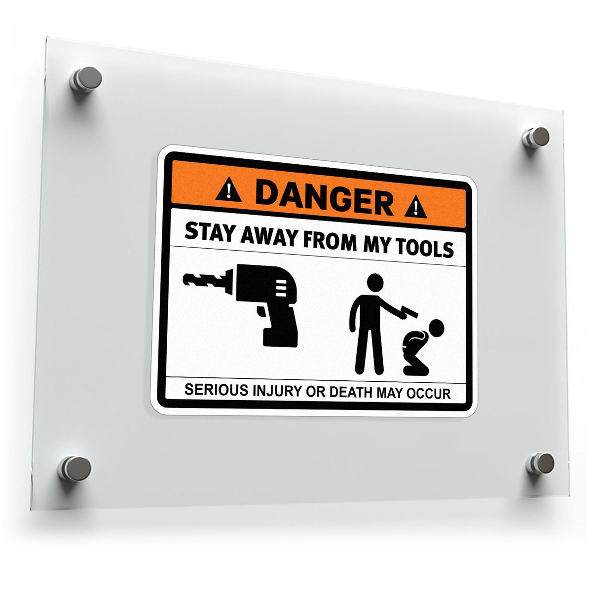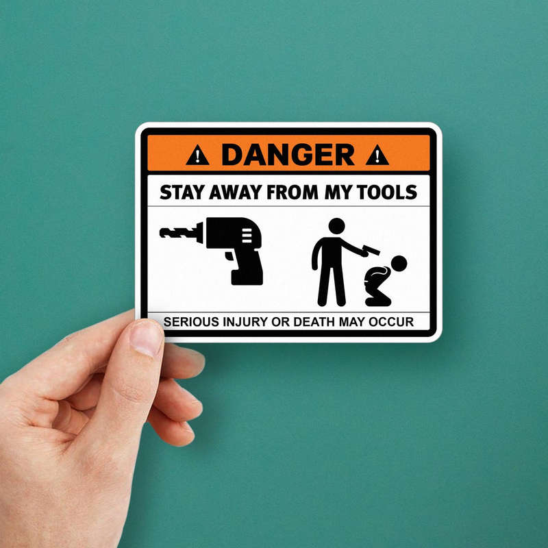 Ensure the safety and protection of your tools with this bold “Danger: Stay Away From My Tools” warning sticker. Featuring a bright orange and black design with clear text and impactful graphics, this decal effectively deters unauthorized access to your tools. Made from durable waterproof vinyl, it withstands outdoor conditions and UV exposure, ensuring long-lasting quality. Ideal for toolboxes, doors, or vehicles, this versatile sticker adheres smoothly and removes cleanly without residue. Available in multiple sizes, it’s an essential safety sign for workshops, garages, or job sites, providing both security and clear communication.