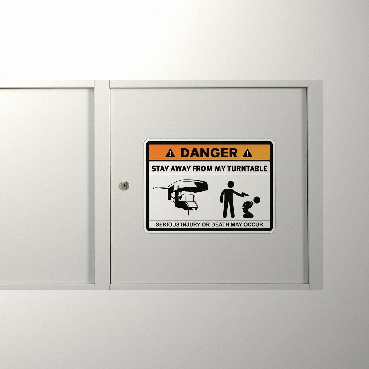 Add a touch of humor to your DJ setup with this “Danger: Stay Away from My Turntable” vinyl sticker, designed for music lovers and professionals alike. Crafted from durable and weatherproof vinyl, this decal is perfect for both indoor and outdoor use on your turntables, laptops, or even as a fun addition to your workspace. It’s easy to apply on any smooth surface and available in multiple size options to fit your specific needs. Show your passion for music and keep your gear protected with this bold and playful sticker.
