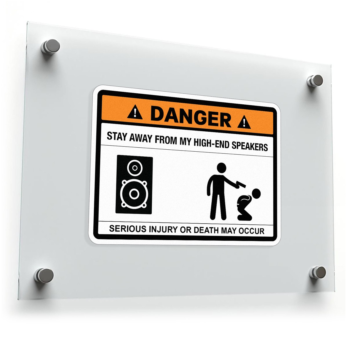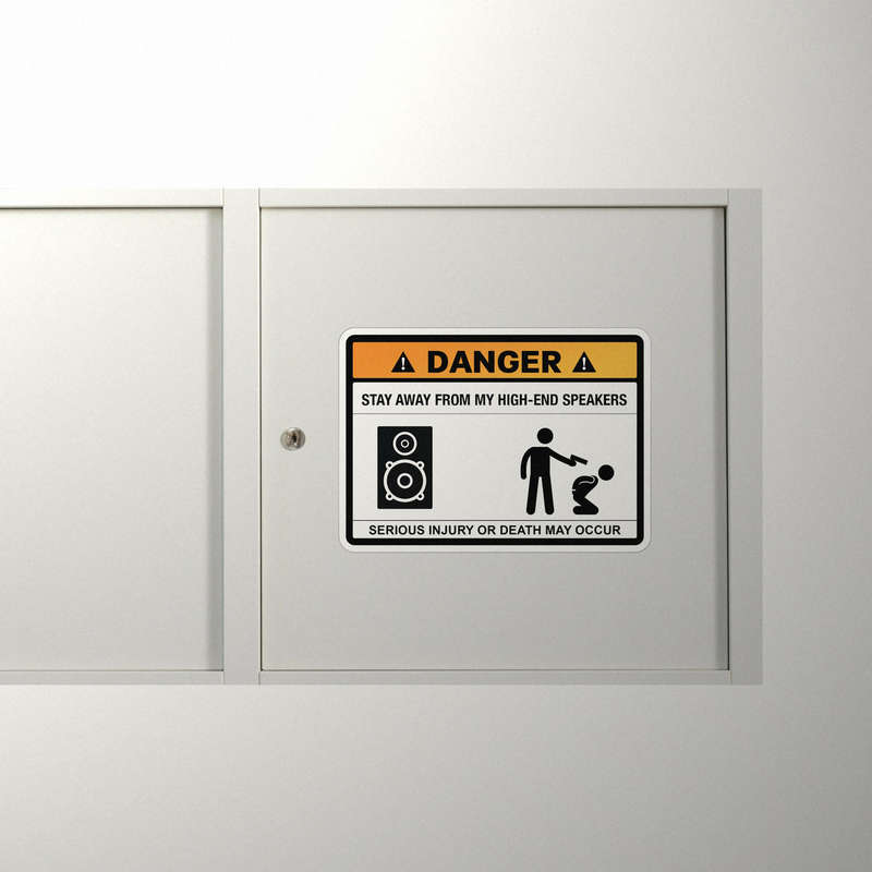 Danger Sign Decal ⚠️ Humorous Danger Warning: Protect your high-end speakers with a touch of humor! This funny “Stay Away from My High-End Speakers” decal adds a lighthearted yet bold warning to any space. ⚠️