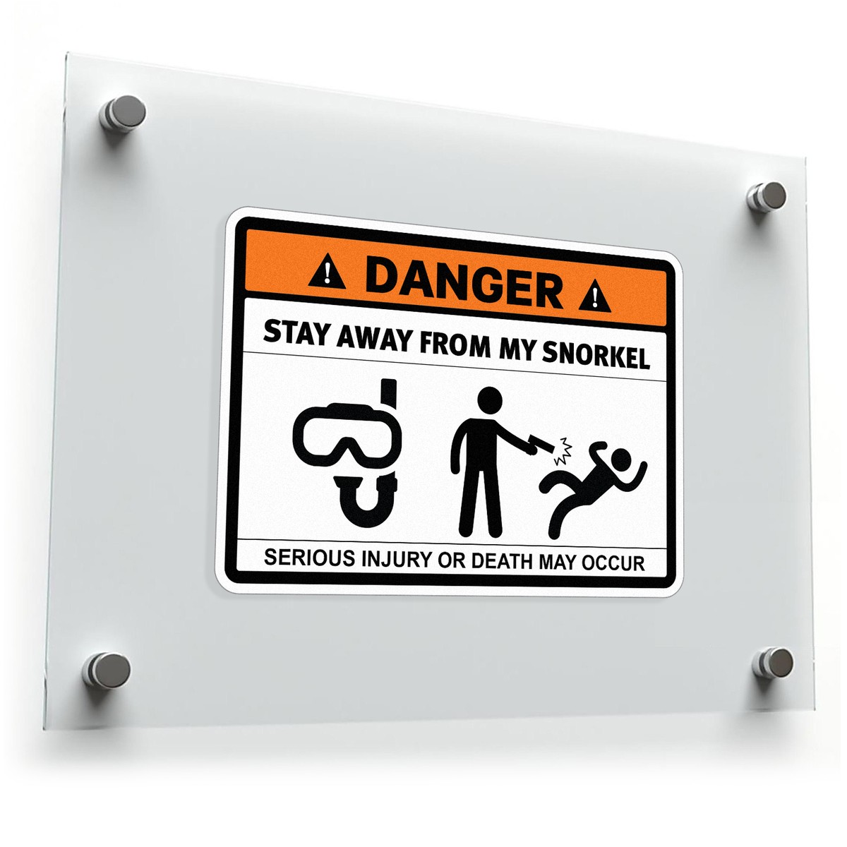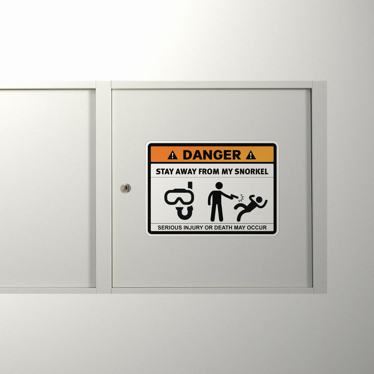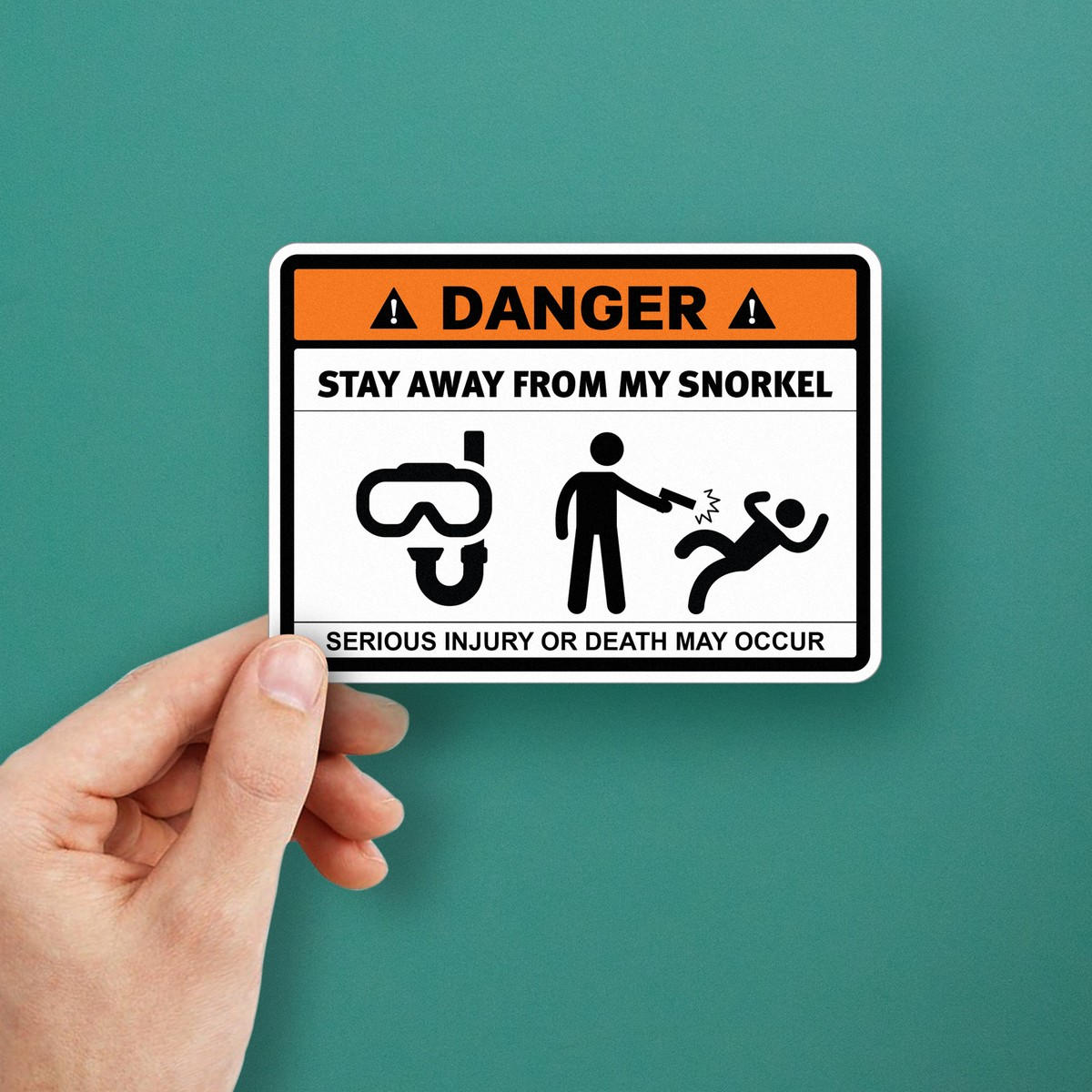 Add a fun and quirky touch to your diving gear with this “Stay Away from My Snorkel” danger sticker. Perfect for divers, snorkelers, or anyone who loves humorous designs, this vinyl decal delivers a lighthearted warning with its bold message and graphics. Made from durable, waterproof vinyl, it’s ideal for both indoor and outdoor use, ensuring it lasts through all your water adventures. Easy to apply and remove, this sticker can be used on cars, gear, or equipment without leaving behind sticky residue. Available in multiple sizes, it’s a great gift for ocean lovers and water sports enthusiasts alike.