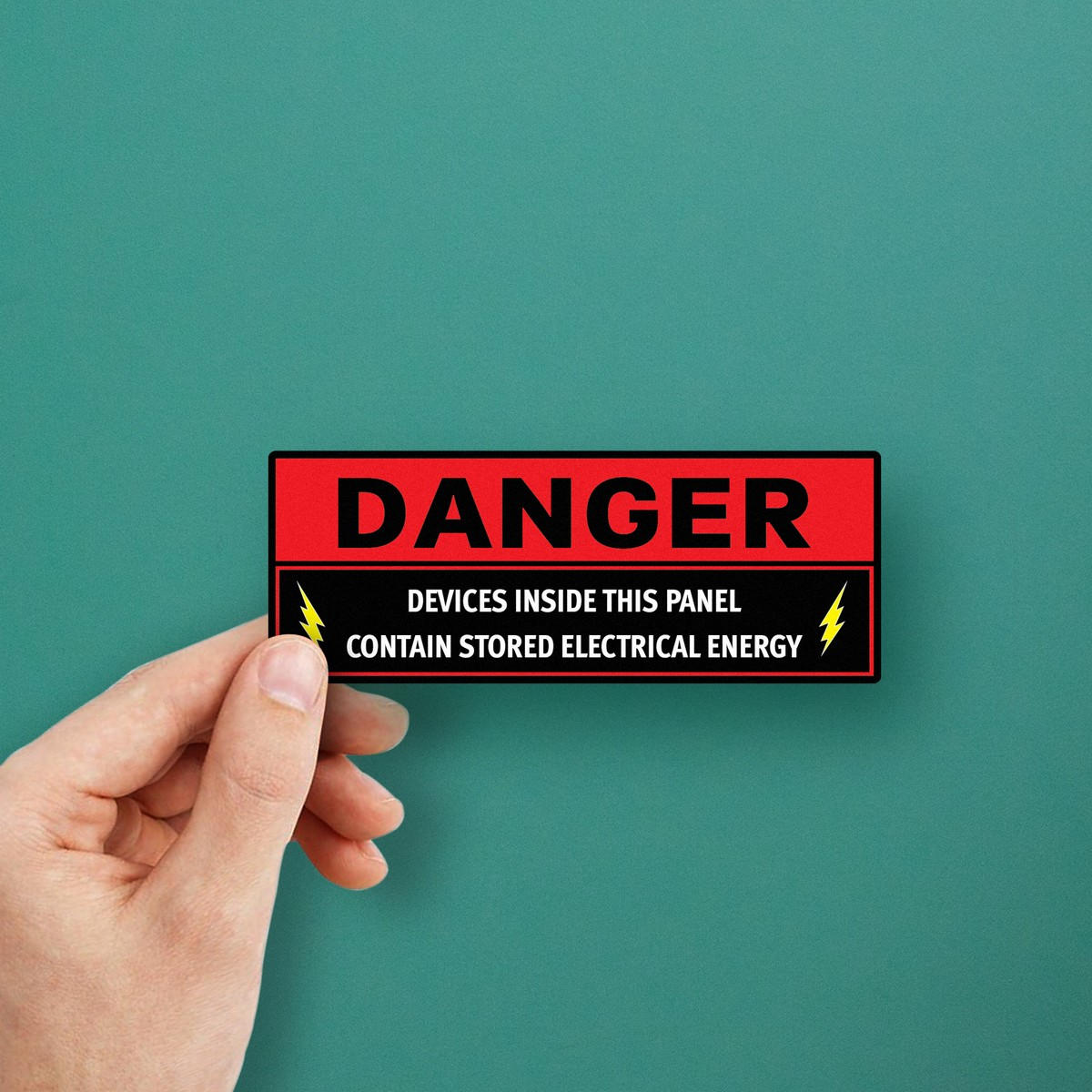 🔧 Bold and Easy-to-Read Design: The bright red and black color scheme, paired with bold lettering, ensures the warning is highly visible, helping to enhance safety in areas with stored electrical energy. 🔧