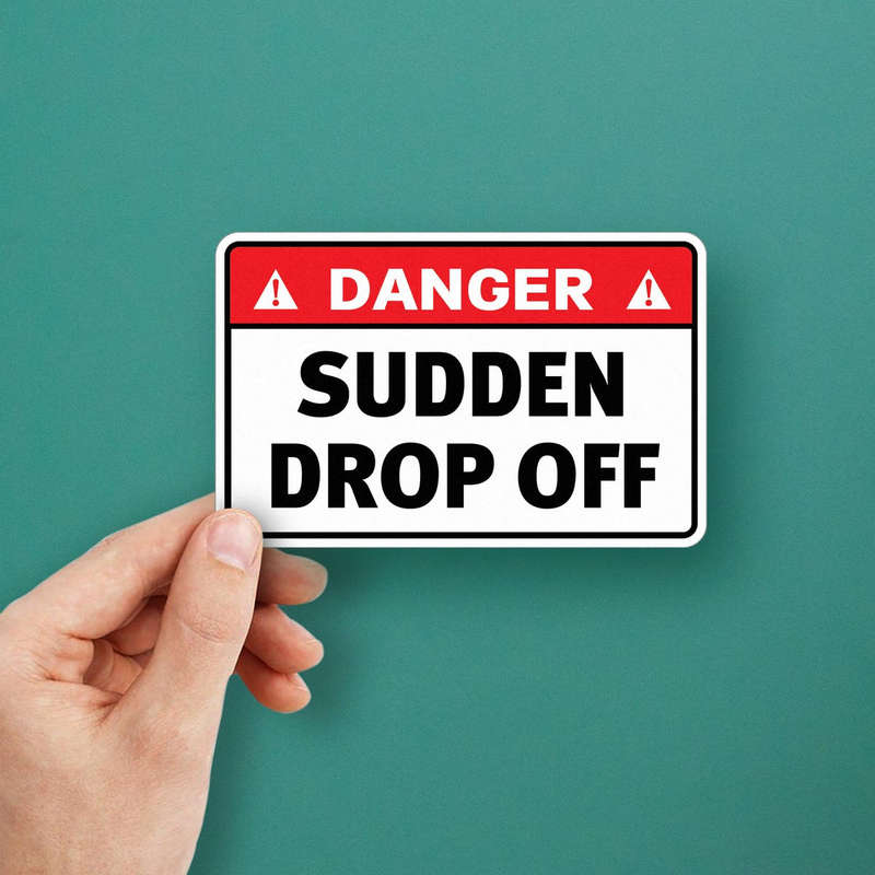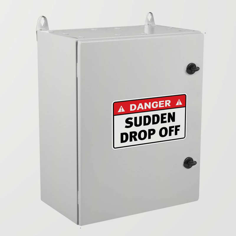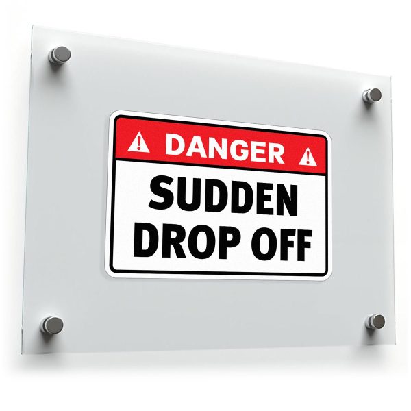 Ensure safety in hazardous areas with this “Danger Sudden Drop Off” sign sticker, a high-visibility decal designed to alert individuals of potential fall hazards. Constructed from weatherproof and durable vinyl, this warning sticker is ideal for outdoor applications, maintaining its clear message in all conditions. Perfect for construction sites, hiking trails, and any other area with sudden drop-off risks, it is available in multiple sizes to fit various needs. This sticker is easy to apply and remove without leaving residue, providing a professional and effective safety solution for any environment.