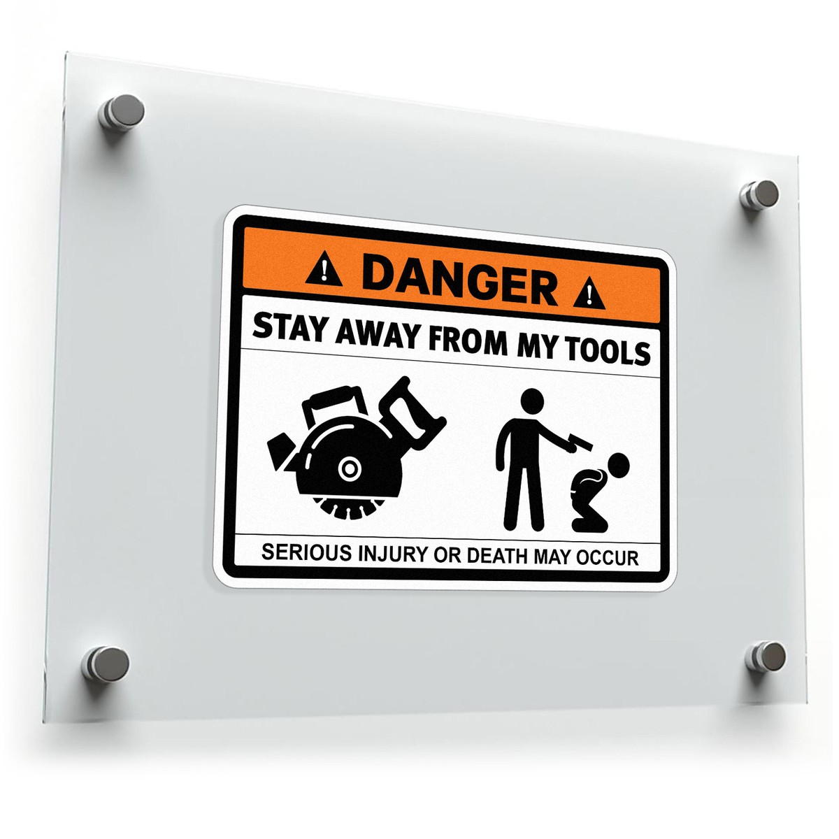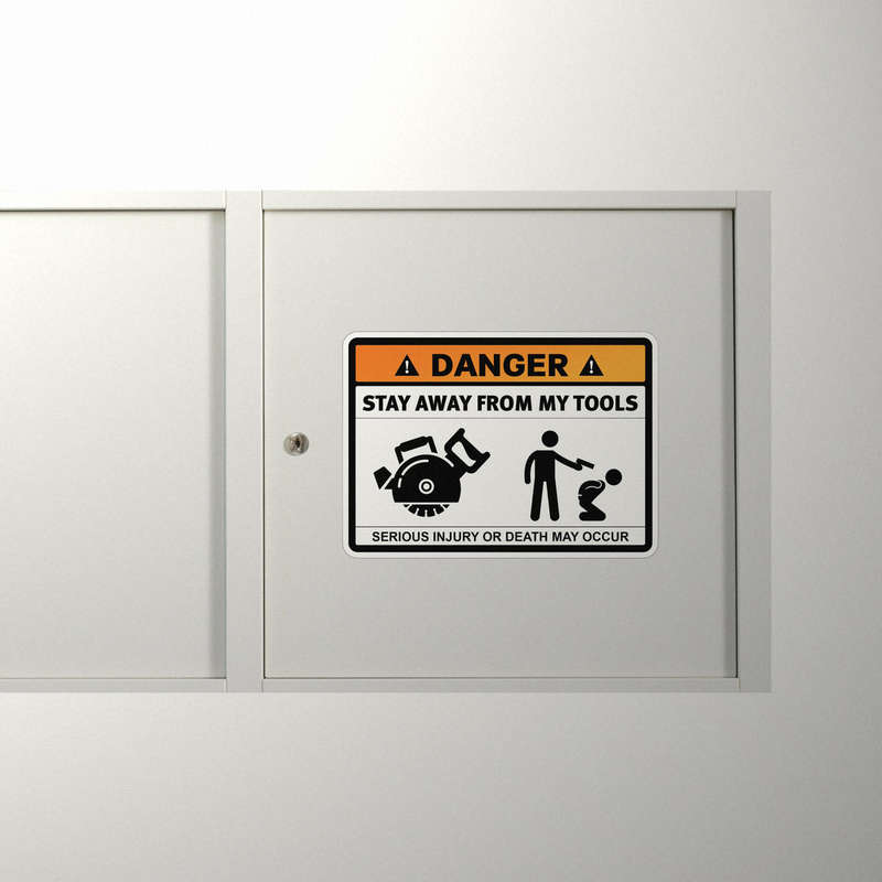 Danger Tools Vinyl Sticker ⚠️ Humorous Warning Design: Featuring a bold “Danger” sign with a playful message about protecting your tools, this sticker adds safety and humor to any workspace. ⚠️