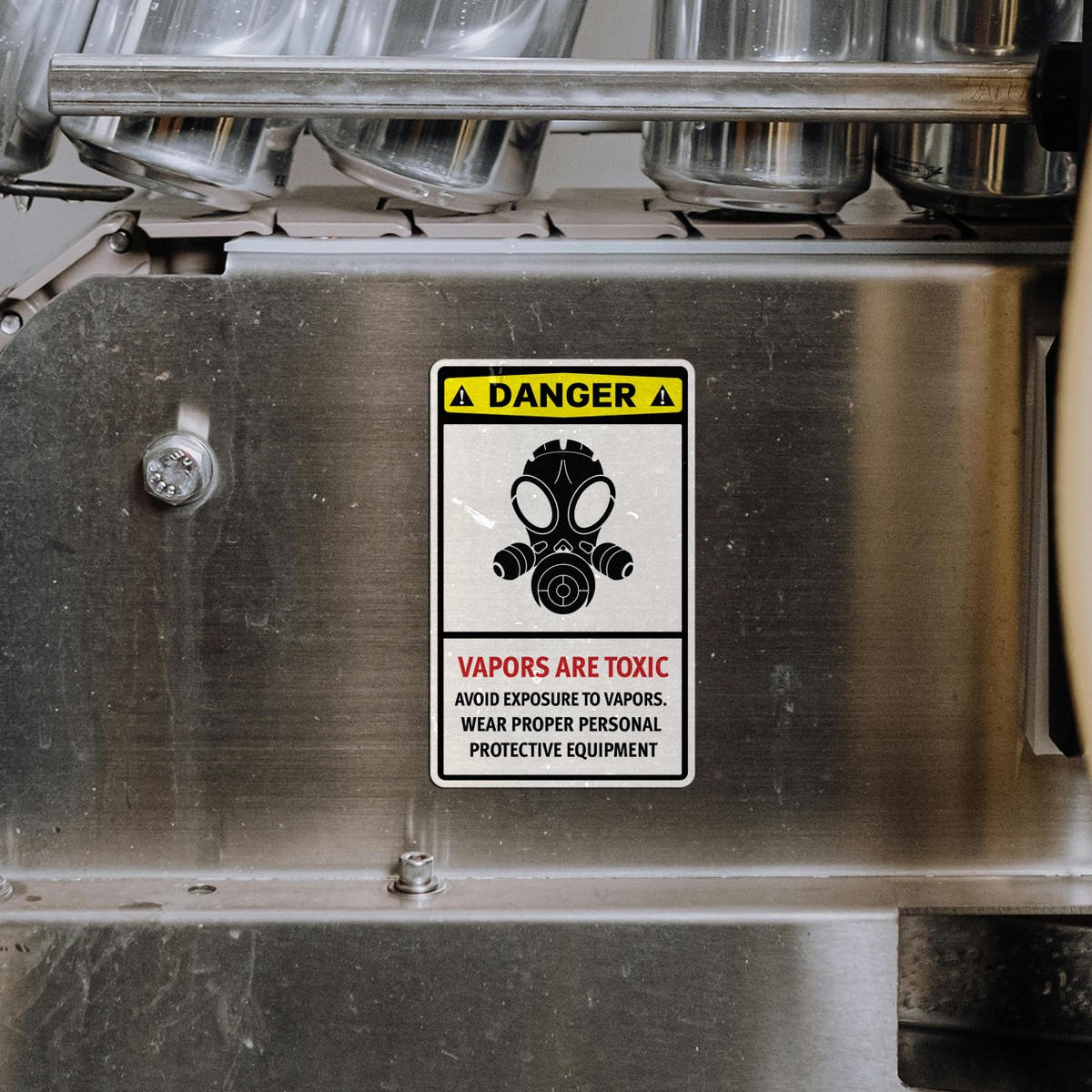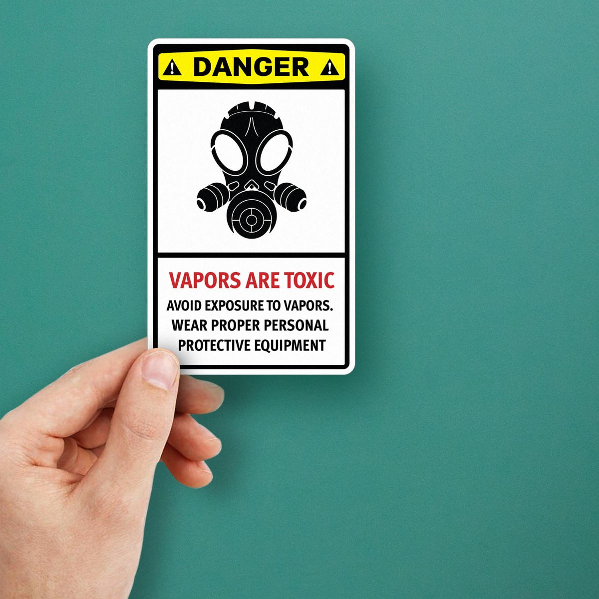 Enhance workplace safety and ensure compliance with this “DANGER: Vapors Are Toxic” vinyl safety sign. Perfect for industrial settings like factories, labs, and chemical plants, this sign serves as a critical warning in hazardous areas where toxic vapors may be present. Made from durable, weatherproof vinyl, this decal can be applied both indoors and outdoors, maintaining its visibility over time. Its high-contrast design and clear instructions promote the use of personal protective equipment (PPE) to safeguard employees and visitors. Easy to apply and remove, it is a practical solution for maintaining safety protocols.