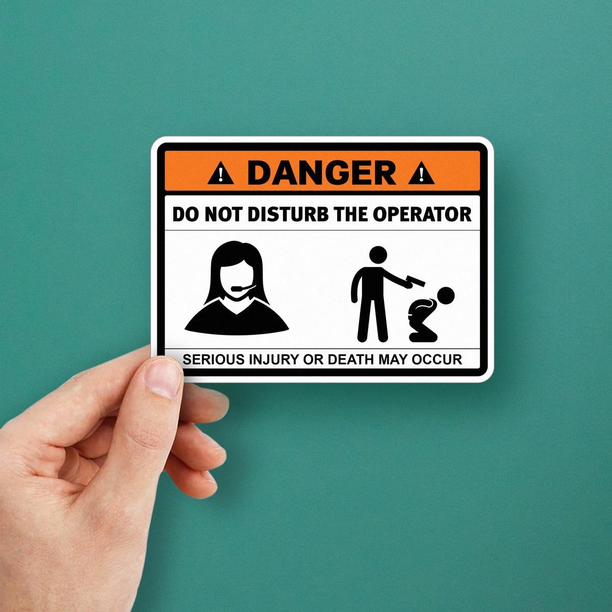 Ensure safety and reduce distractions with this “Danger: Do Not Disturb the Operator” warning sticker. Designed with a bright orange header, bold black text, and clear safety icons, this decal delivers an immediate message to maintain focus in critical environments. Crafted from durable vinyl, it resists fading, weather, and wear, making it suitable for both indoor and outdoor use. Perfect for application on doors, equipment, or walls, this sticker adheres securely to smooth surfaces. Available in multiple sizes, this safety sticker provides a reliable and professional way to enhance safety and minimize interruptions in any workspace.