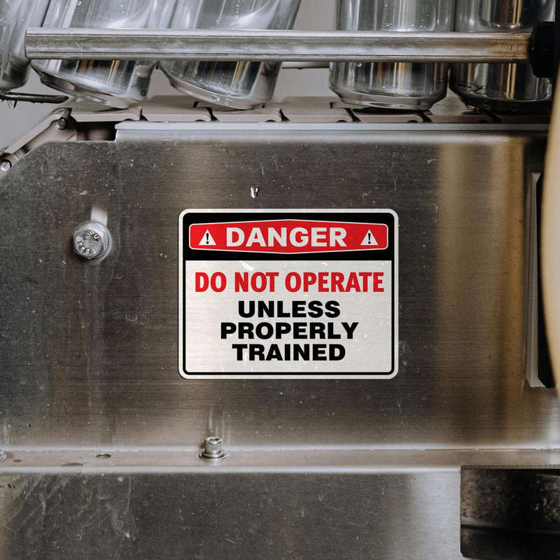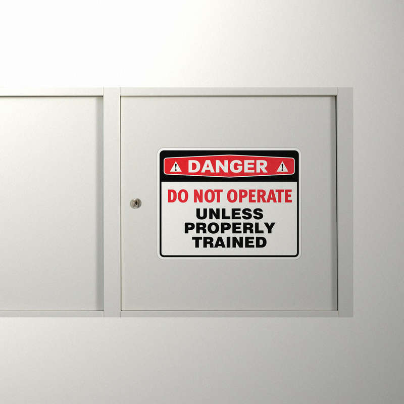 Ensure maximum safety with this “Do Not Operate Unless Properly Trained” warning sticker, designed in a bold red and black color scheme for high visibility. This durable decal is perfect for hazardous equipment and industrial areas, reminding workers and operators of the importance of proper training. Its waterproof and fade-resistant design allows it to withstand harsh conditions, making it suitable for both indoor and outdoor use. Available in multiple size options, this safety sign is an essential addition to any workplace that values precaution and the well-being of its personnel.