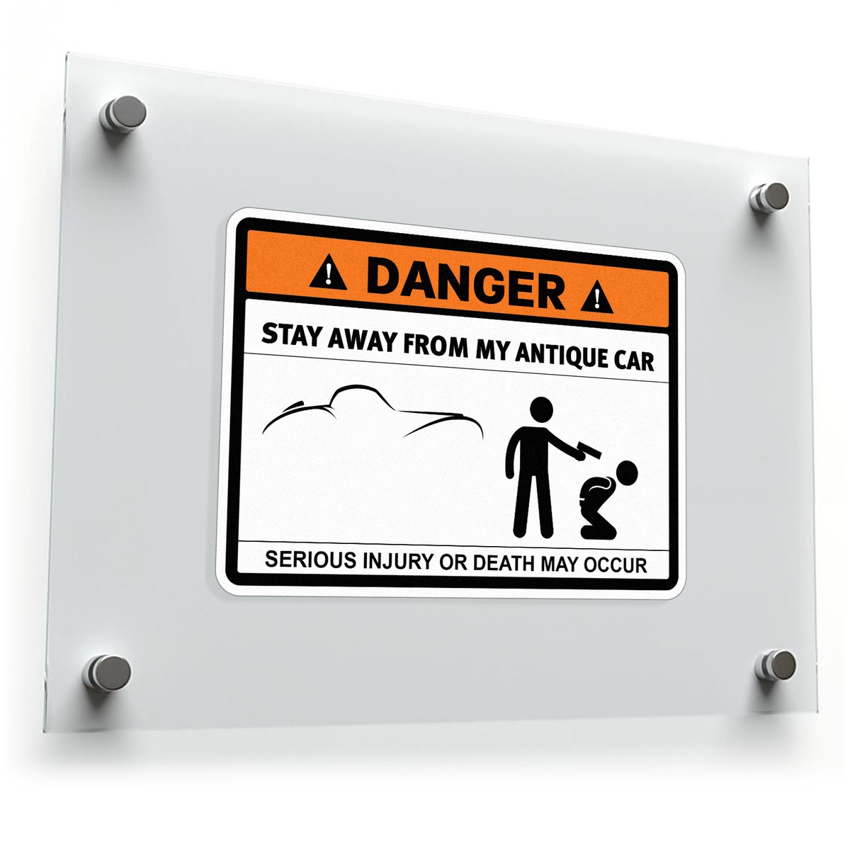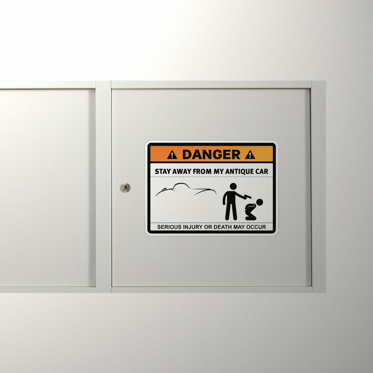Protect your prized vehicle with this “Danger: Stay Away from My Antique Car” warning sticker. Designed specifically for car enthusiasts, it features a bold orange header, strong black text, and clear symbols to deter unauthorized access or damage. Made from premium vinyl, this decal is weatherproof, fade-resistant, and built to withstand outdoor elements, ensuring long-lasting protection. Its versatile design makes it perfect for application on windows, doors, or garages. Available in multiple sizes, this sticker ensures visibility and serves as a reliable and professional way to safeguard your antique or vintage car.