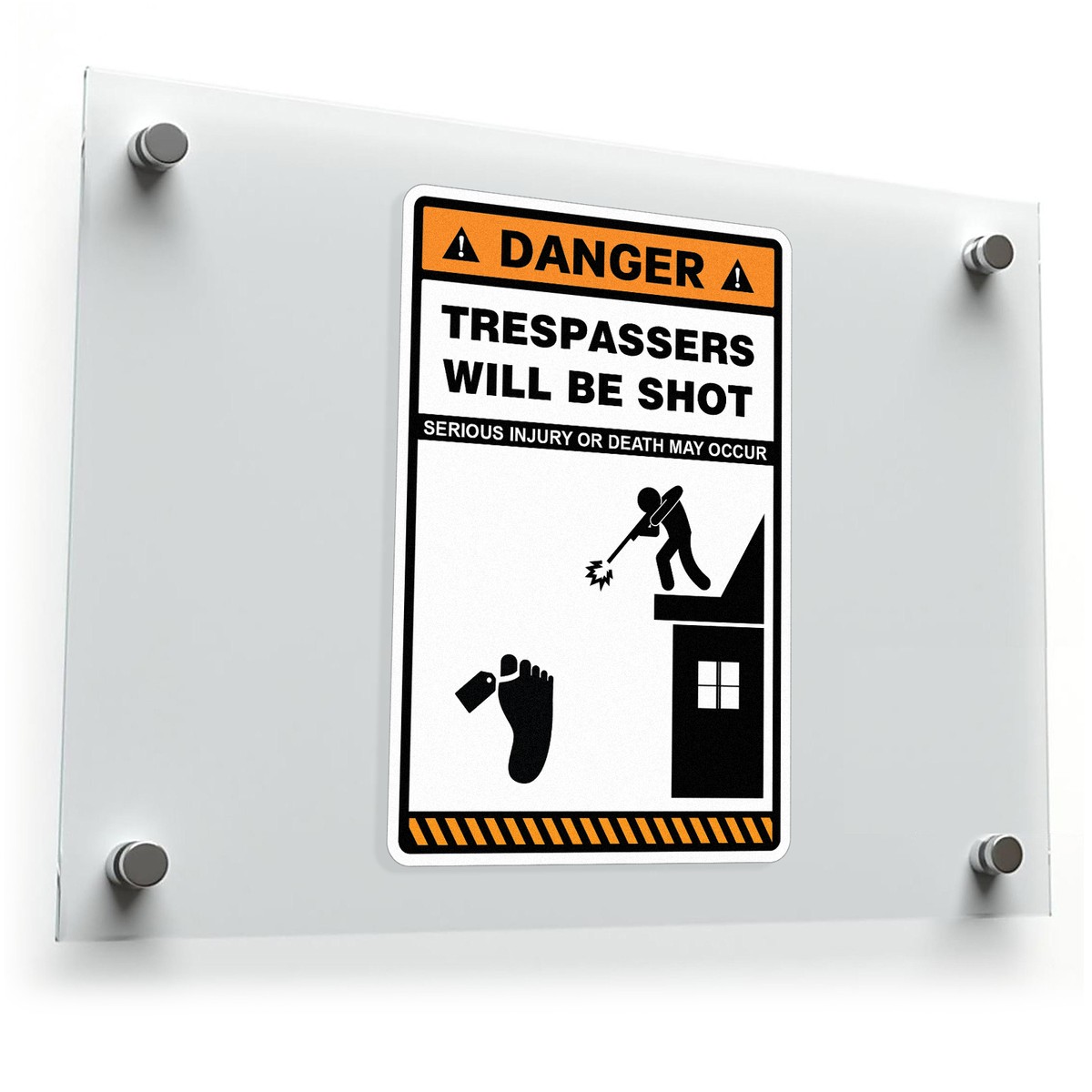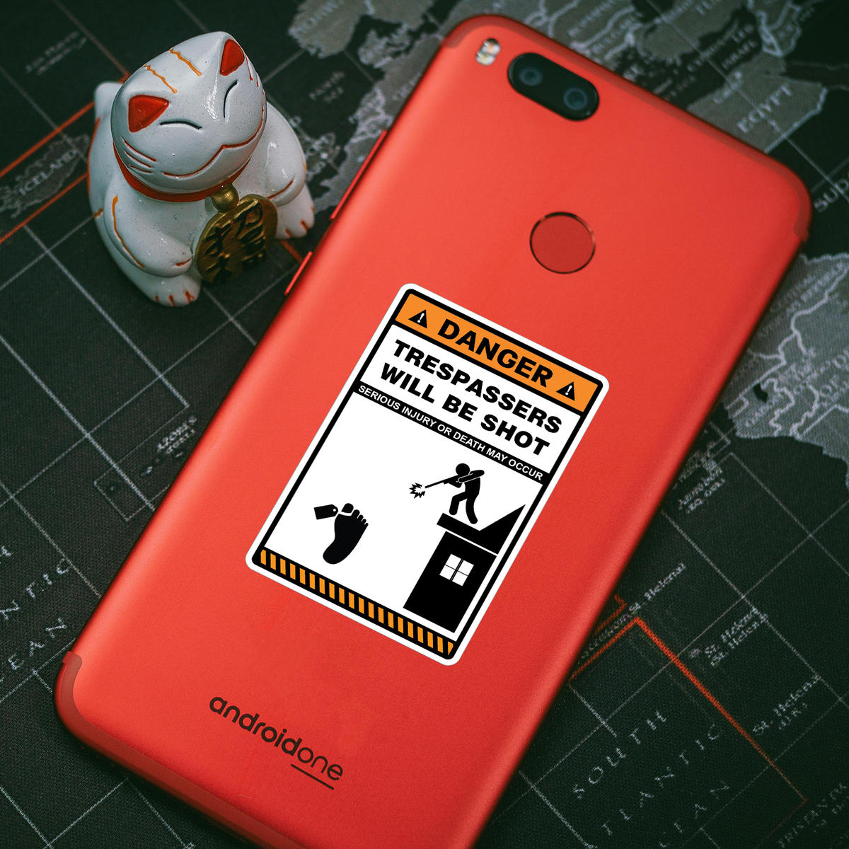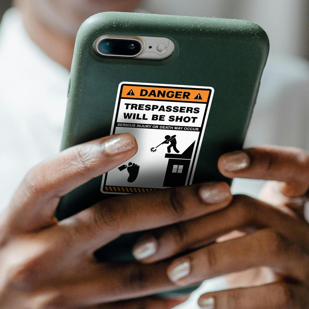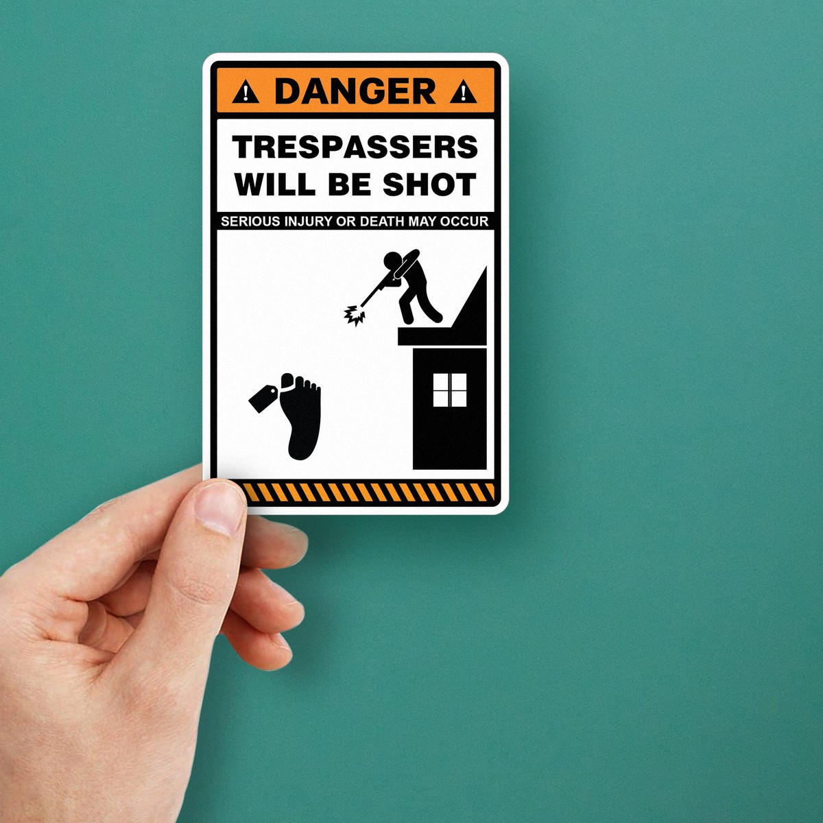 Danger Warning Sticker ⚠️ Bold Danger Message: Featuring the stark warning “Trespassers Will Be Shot,” this sticker delivers a clear and impactful message, perfect for enhancing property security. ⚠️