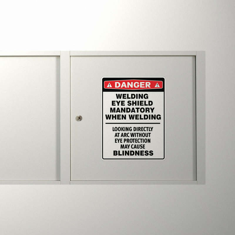 “Danger: Welding Eye Shield Mandatory” Safety Sticker