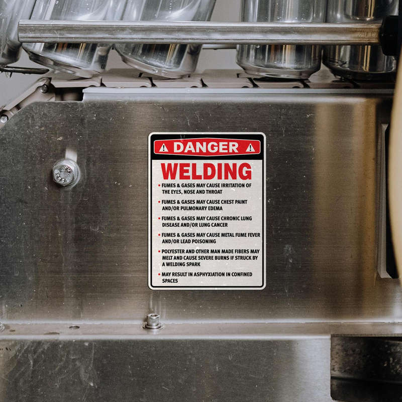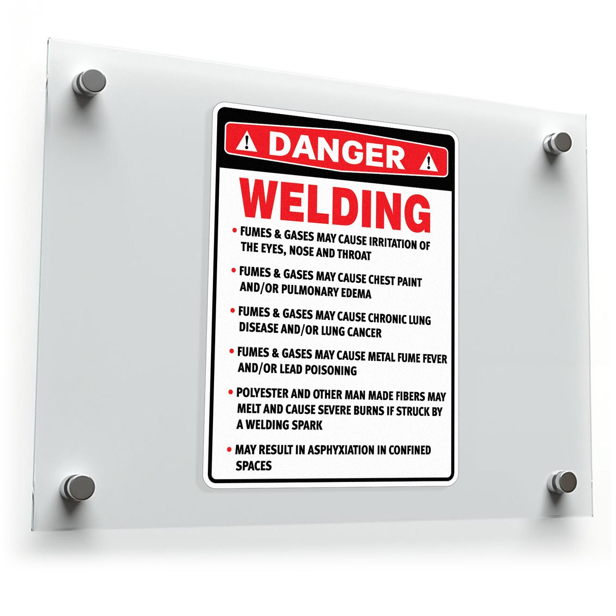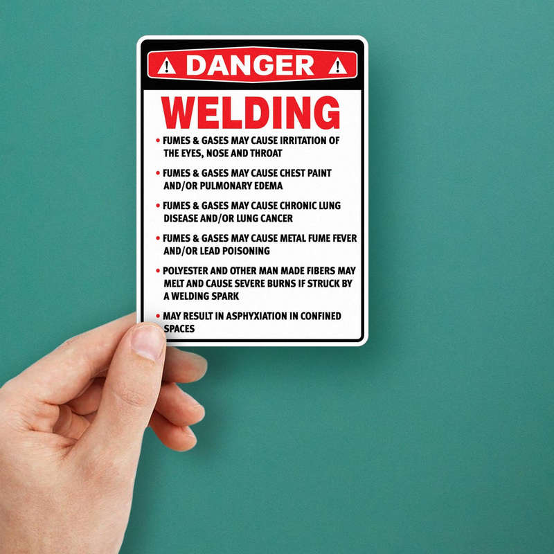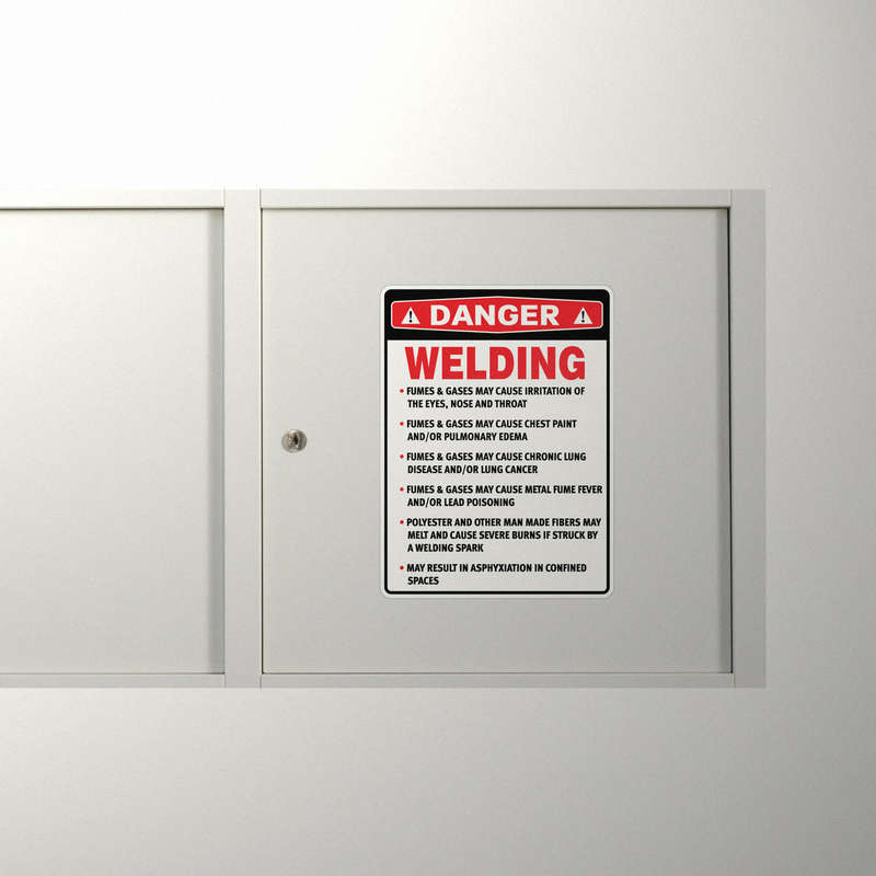Promote workplace safety with this “Danger Welding” safety decal, designed to highlight critical hazards associated with welding fumes, gases, and confined spaces. The bold red, black, and white design ensures visibility, while the detailed warnings enhance safety awareness in industrial environments. Constructed from durable vinyl, this sticker resists wear, tear, and weather conditions, making it ideal for both indoor and outdoor applications. Easy to apply and remove, it adheres securely to walls, equipment, or confined space entrances without leaving residue. OSHA-compliant, this welding hazard warning decal is essential for maintaining a safe and compliant workplace.