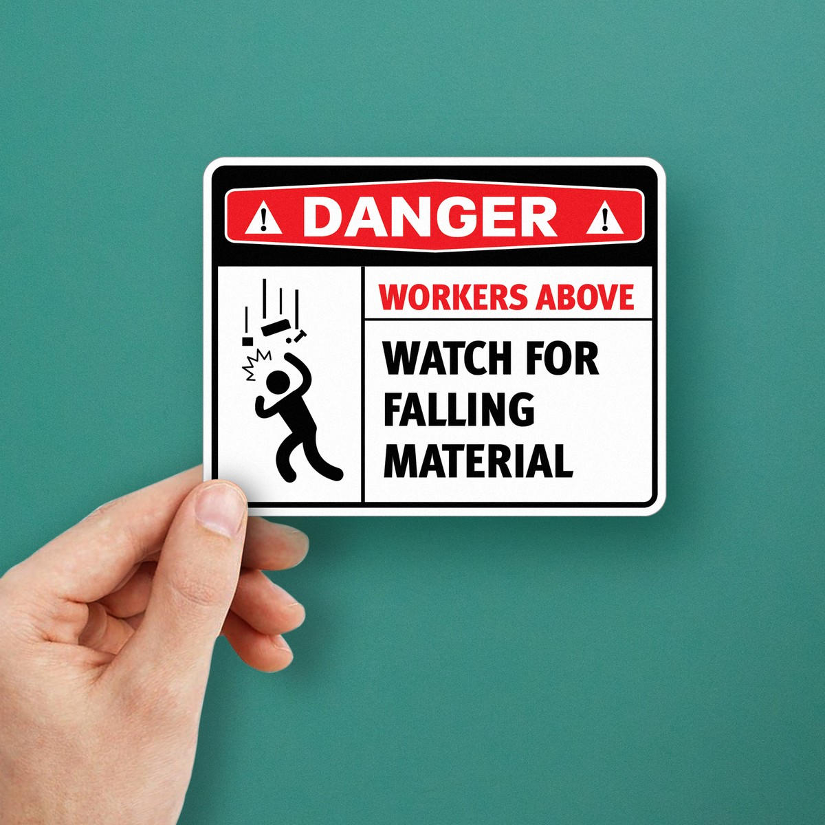 Ensure safety in hazardous work environments with this “Danger Workers Above Watch for Falling Material” vinyl sticker. Designed in bold red, black, and white, this clear warning sign is essential for construction sites, industrial workplaces, and warehouses to prevent accidents and protect workers. Made from durable, waterproof vinyl, it resists fading and peeling, ensuring long-lasting visibility in tough conditions. The sticker is easy to apply and remove, making it a practical safety solution for various surfaces. Available in multiple sizes to suit your needs, this safety decal helps maintain OSHA compliance and enhances workplace safety.