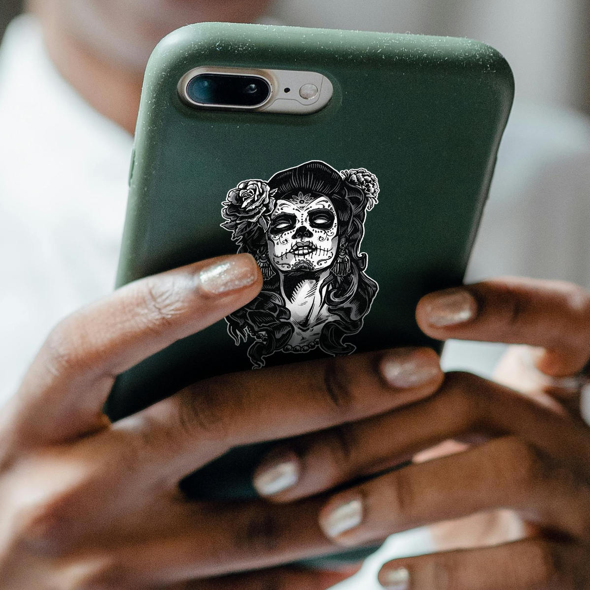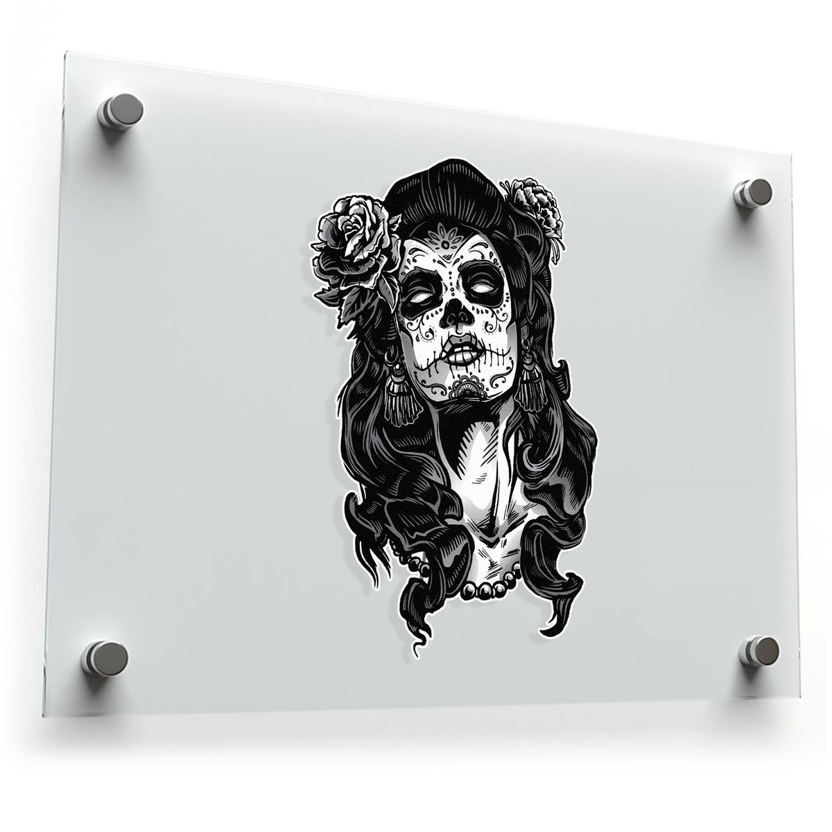 Celebrate the beauty of Mexican culture with this intricate Day of the Dead sugar skull woman decal. Featuring a detailed calavera design, this vinyl sticker is perfect for cars, laptops, water bottles, and other personal items. Crafted from durable, weatherproof vinyl, the decal retains its vibrant look both indoors and outdoors. This warning sign is easy to apply to gates, fences, walls, and other surfaces using its peel-and-stick application, providing a rich cultural touch to any space without leaving residue behind.