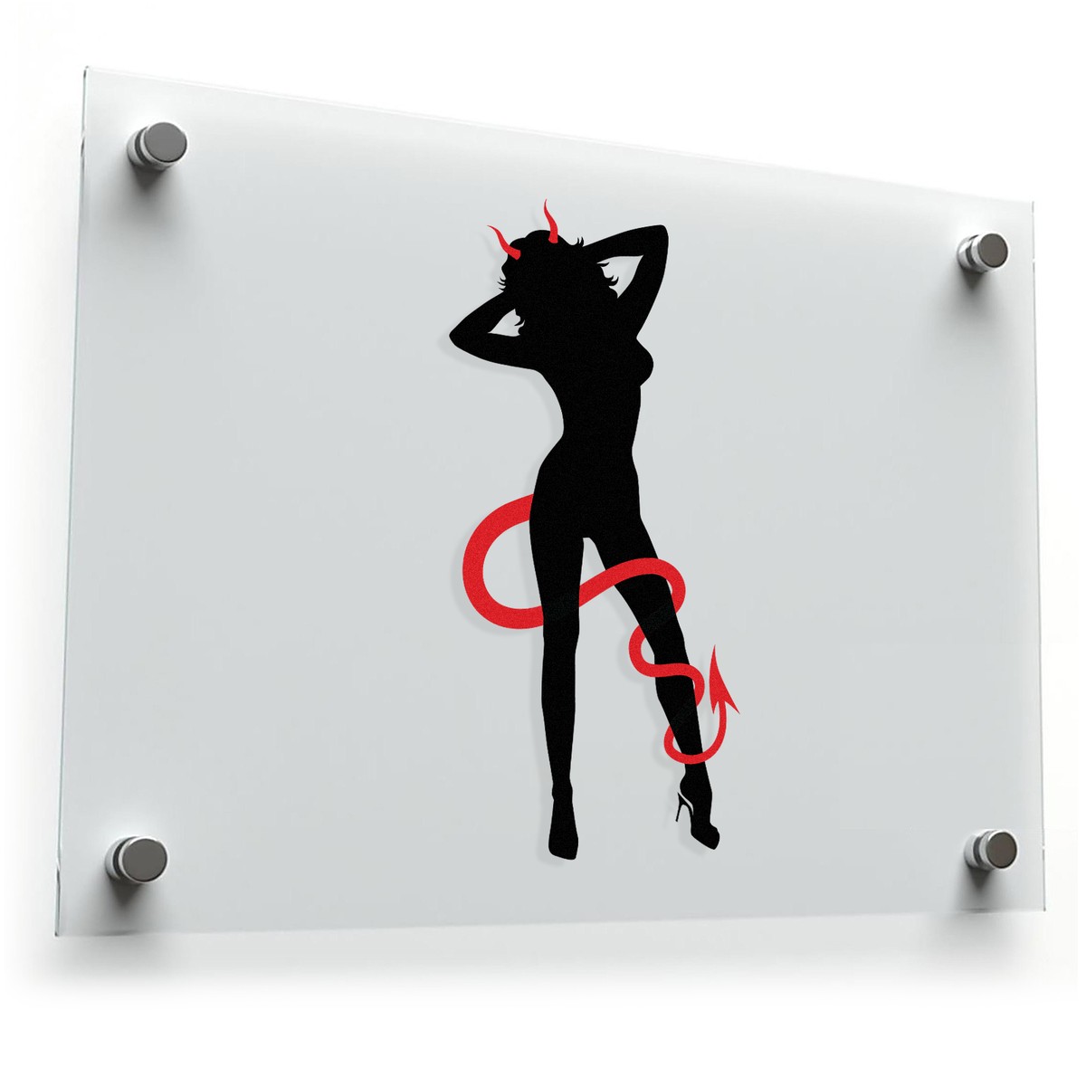 Show off your bold side with this devil girl silhouette vinyl sticker. Featuring a sultry red and black design, this 6-inch decal is perfect for adding a fun and edgy touch to your car, laptop, motorcycle, or any personal item. Made from premium waterproof vinyl, it’s designed to withstand the elements while maintaining its vibrant look. The peel-and-stick application makes it easy to apply or remove without leaving any residue. Whether you’re an automotive enthusiast or just love daring designs, this devil girl decal is the perfect addition to your collection. Available in multiple sizes.