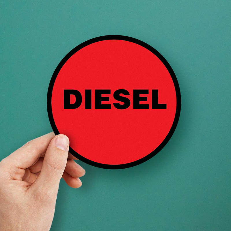 Enhance safety and efficiency with this bold red and black “Diesel” fuel label decal. Made from durable and weatherproof vinyl, this sticker ensures clear identification for diesel fuel tanks, pumps, and machinery. Its striking design reduces the risk of fuel mix-ups, promoting safe and organized operations. Easy to apply and remove, this decal adheres smoothly to various surfaces without leaving residue. Ideal for both personal and commercial use, it fits a variety of applications, including industrial equipment and commercial vehicles. Available in multiple sizes, this practical and long-lasting sticker is an essential addition to any fuel management system.