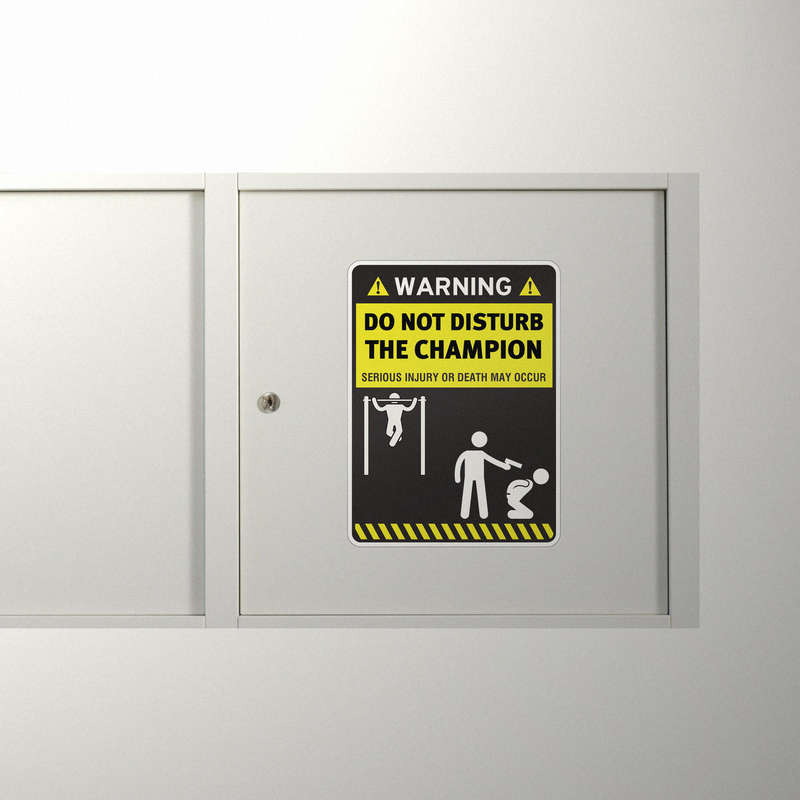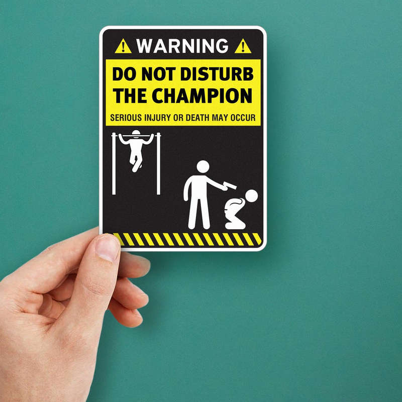 Make a bold statement with this “Do Not Disturb the Champion” warning sticker, featuring a striking black and yellow design and a humorous yet cautionary message. Perfect for gym enthusiasts, this vinyl decal can be applied to gym equipment, lockers, or personal workout spaces to add personality and motivation. Built from durable, weatherproof vinyl, it resists fading and peeling, making it suitable for indoor and outdoor use. Whether as a gift or for personal decor, this sticker combines functionality with a touch of humor. Easy to apply and remove, it’s available in multiple sizes to suit your needs.