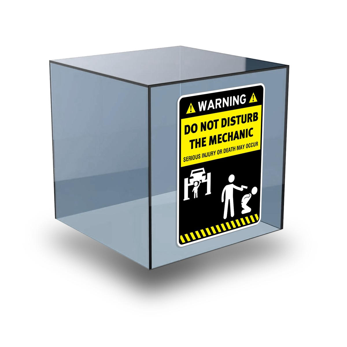 Make your garage or workshop both safe and fun with this “Do Not Disturb the Mechanic” warning sign. Crafted from high-quality, weatherproof vinyl, this sticker is designed to withstand the elements while maintaining its bold message and humorous tone. Perfect for garages, auto repair shops, or home workshops, this decal ensures that everyone knows not to disturb the mechanic at work. Its easy peel-and-stick application makes it simple to add to walls, doors, or toolboxes. Available in multiple sizes, this sign is a must-have for any mechanic who appreciates both safety and humor.