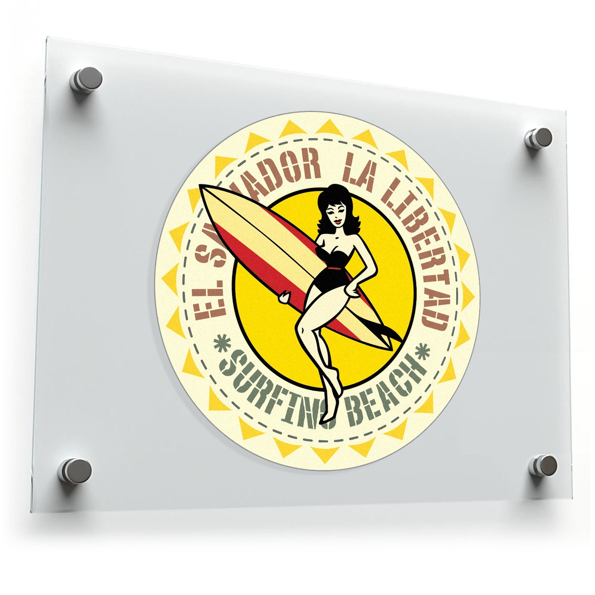 Bring the beachside charm of El Salvador’s La Libertad to your space with this retro surfer girl vinyl sticker. Featuring vibrant colors and a nostalgic design, this decal is perfect for decorating laptops, cars, travel gear, or tropical-themed home decor. Made from durable vinyl, it’s waterproof and scratch-resistant, making it a reliable choice for both indoor and outdoor applications. The peel-and-stick design ensures hassle-free application and removal without any sticky residue. Whether you’re a surfing enthusiast or simply love tropical vibes, this sticker offers a stylish and fun way to express your love for the beach. Available in multiple sizes to suit your needs.