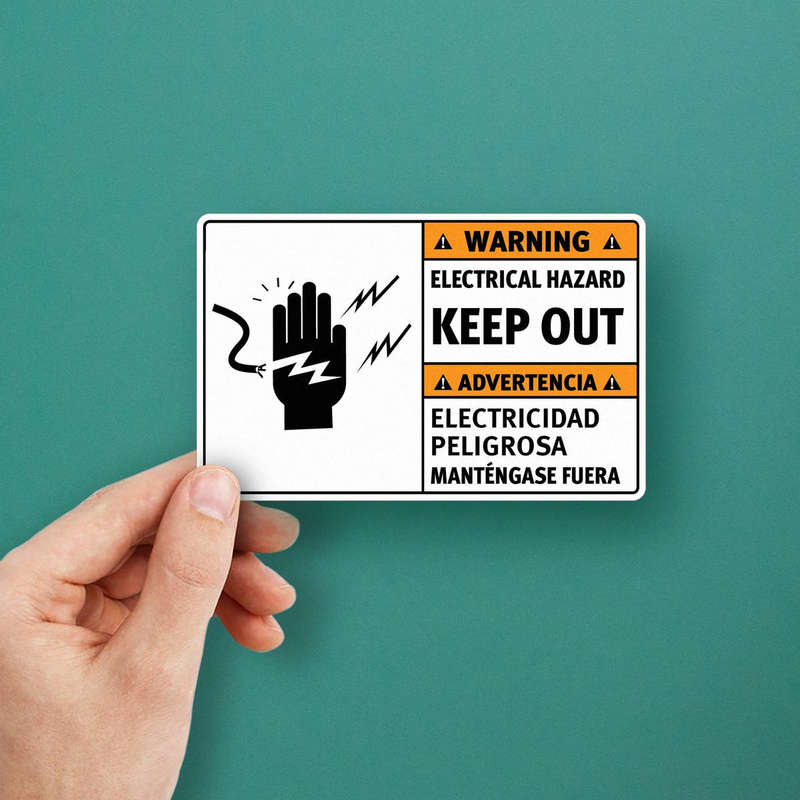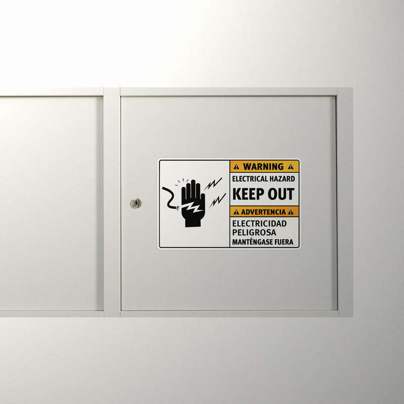 Promote a safe environment with this Electrical Hazard Warning Sticker, a durable and clear safety decal designed for high-risk areas. Featuring a bold bilingual message in English and Spanish, this “Keep Out” warning sign effectively communicates the presence of electrical hazards, making it ideal for workplaces, industrial sites, and public spaces. Crafted from waterproof and fade-resistant materials, this decal is suitable for both indoor and outdoor conditions, ensuring visibility in all environments. Available in multiple sizes, it’s an essential tool for promoting safety and caution in any hazardous area.