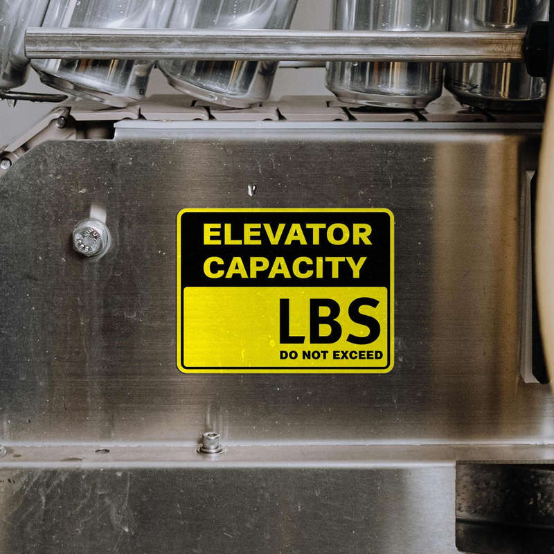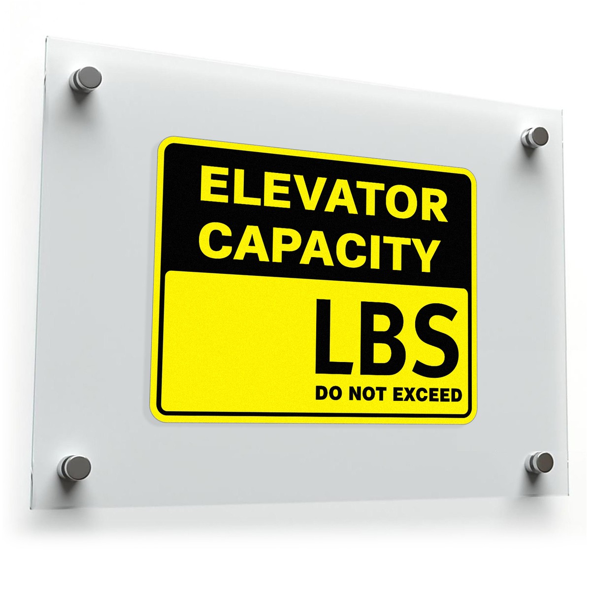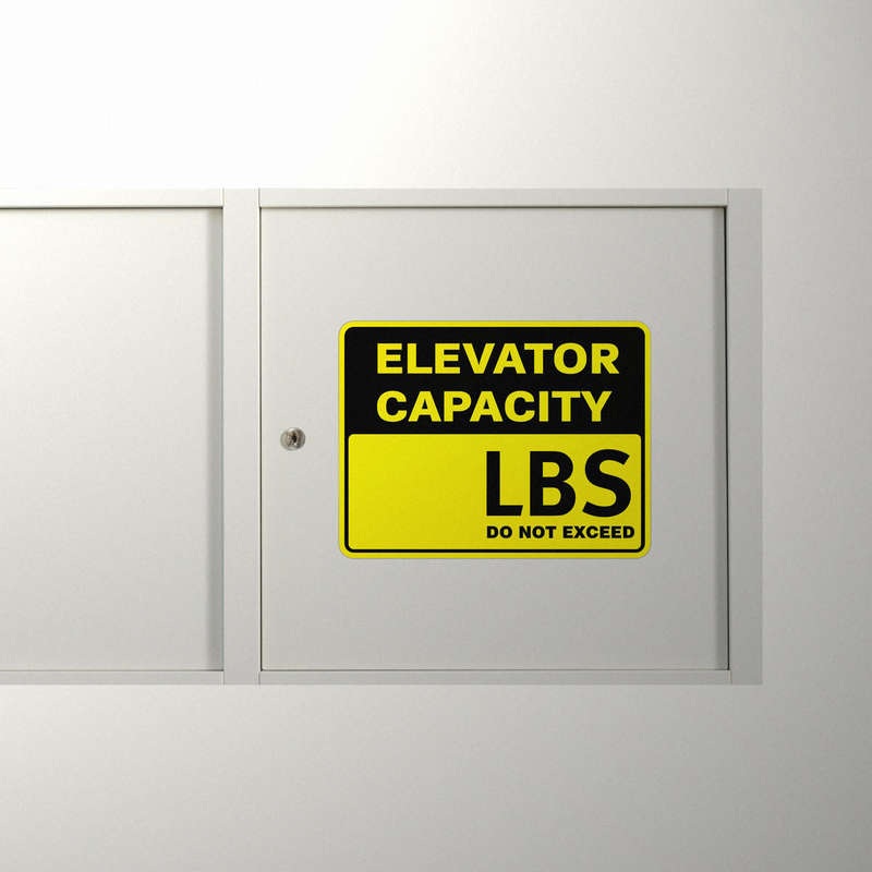 Ensure safety compliance with this “Elevator Capacity” vinyl sticker, designed to clearly communicate weight limits. Featuring a bold black and yellow design, this decal provides a writable space to customize capacity information for elevators in workplaces, residential buildings, or public spaces. Made from durable vinyl, it resists wear, fading, and environmental factors, ensuring long-term use both indoors and outdoors. Its highly visible design enhances safety, ensuring easy recognition by users. Easy to apply and remove, this sticker adheres securely to elevator doors or walls and leaves no residue, making it a practical and effective solution for maintaining safety standards.