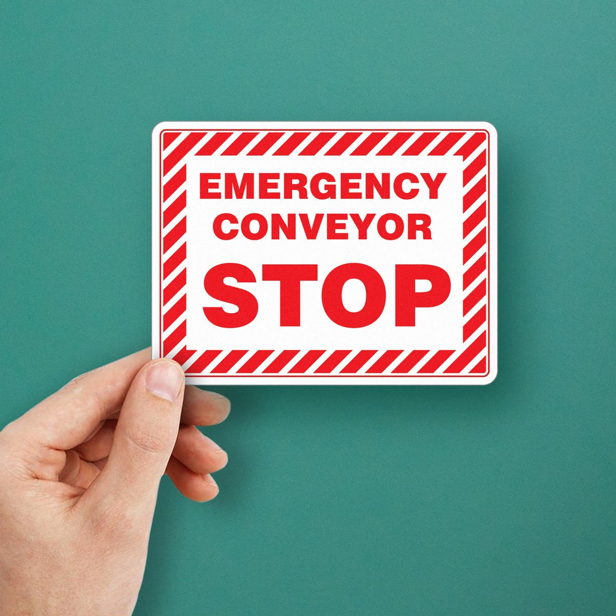 Enhance safety in industrial environments with this high-visibility “Emergency Conveyor Stop” sign. Featuring bold red lettering and a striped border, this vinyl decal is designed to be easily recognizable during emergencies. Ideal for factories and warehouses, it ensures that machinery can be stopped quickly and efficiently when needed. Made from durable, weather-resistant vinyl, this decal is built to withstand the demands of tough industrial conditions. Its easy-application adhesive backing ensures a secure fit on any smooth surface. Available in multiple size options for versatile use across various machinery setups.