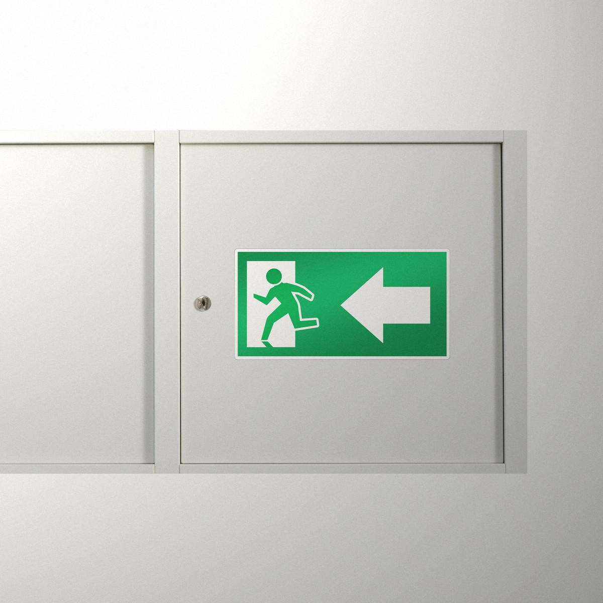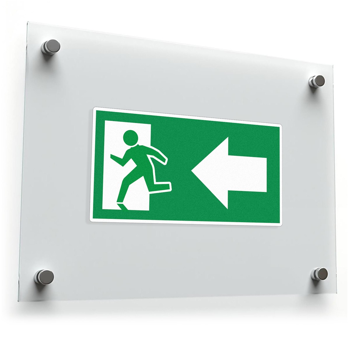 Enhance safety measures with this emergency exit sticker featuring a bold green background, a clear left arrow, and a running figure design. Perfect for guiding people during emergencies, this vinyl decal ensures visibility and clarity in public and commercial spaces. Its vibrant green and white contrast stands out in low-light settings, making it easy to locate escape routes. Crafted from durable, weatherproof vinyl, it’s built to last and withstand various conditions. Simple to apply and remove, this decal adheres smoothly to surfaces without leaving residue. Available in multiple sizes, it’s an essential addition for safety compliance in any building.